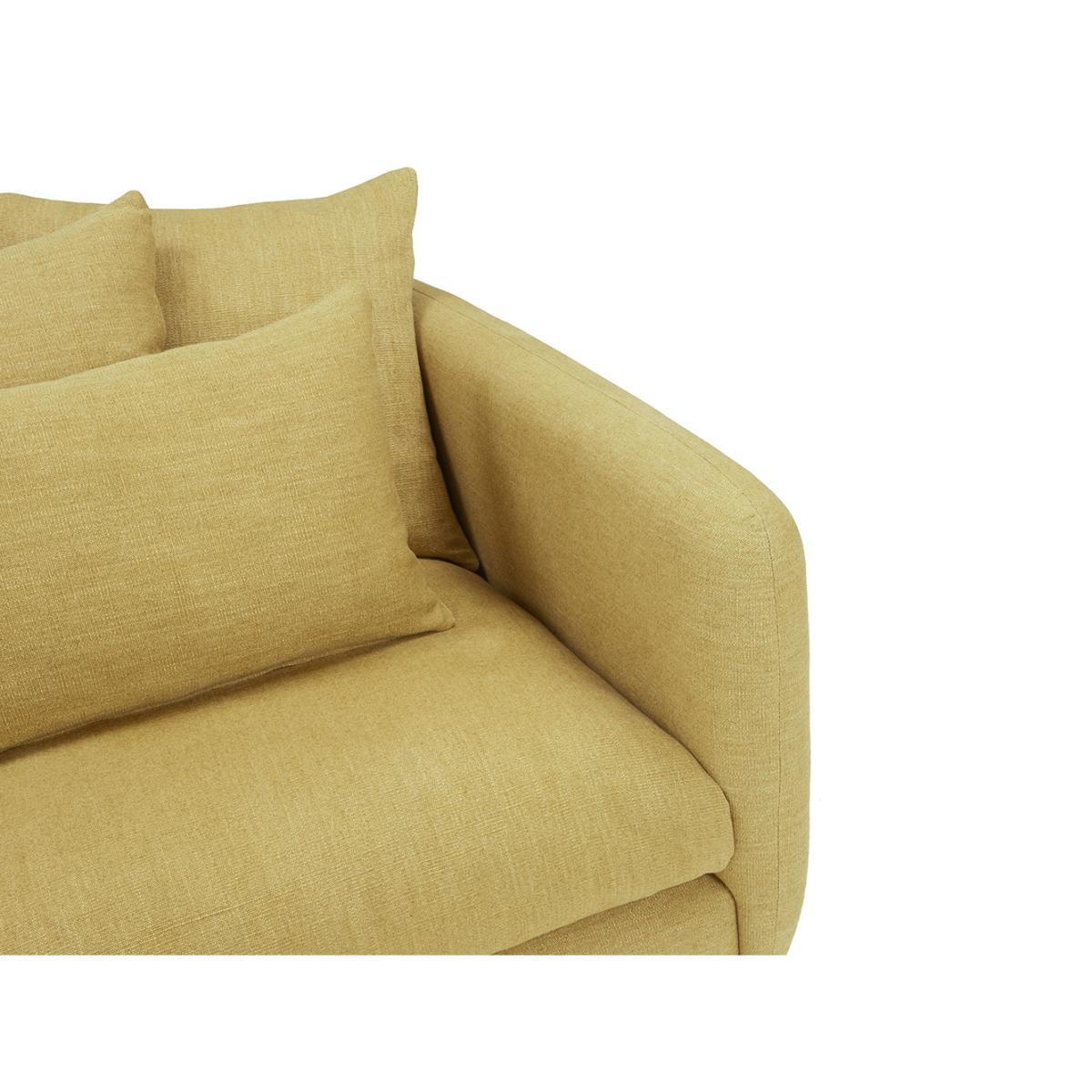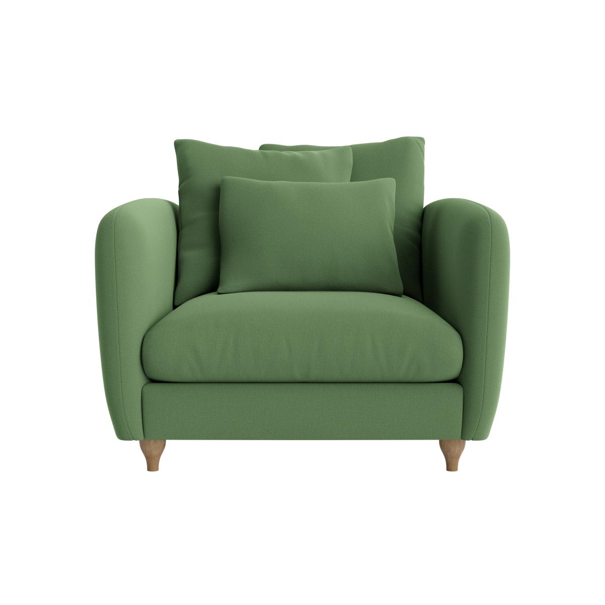 I love this love seat for its bold, cheerful colour and its versatile, modern shape. It works really well in eclectic or contemporary interiors, adding a pop of colour without overwhelming the space. Pair it with geometric prints or neutral tones to let the green stand out, or mix it with earthy textures like rattan or raw linen for a cosy, relaxed vibe. For styling tips, consider layering with a variety of cushions in different textures and sizes to create depth and comfort. Its compact size also makes it ideal for smaller living rooms or as an accent piece in open-plan spaces, making it a practical yet striking choice.