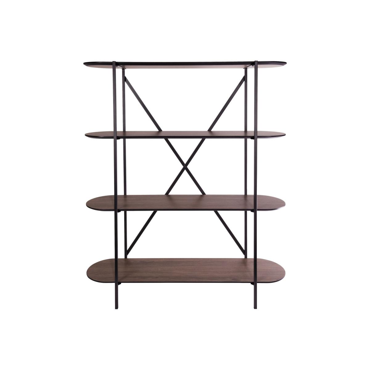 Poe shelving unit, featuring a matte black frame and mocha veneer shelves. These sleek shelves boast a rich mocha veneer that adds warmth to any room, while the matte black frame provides a contemporary contrast. Perfect for displaying your favourite books, plants or knick-knacks, these versatile shelves effortlessly blend form and function. Assembly is a breeze, so you'll be organising in style in no time. Whether you're revamping your living room, bedroom or home office, these Poe shelves are the stylish storage solution you've been searching for. Poe shelving unit, featuring a matte black frame and mocha veneer shelves. These sleek shelves boast a rich mocha veneer that adds warmth to any room, while the matte black frame provides a contemporary contrast. Perfect for displaying your favourite books, plants or knick-knacks, these versatile shelves effortlessly blend form and function. Assembly is a breeze, so you'll be organising in style in no time. Whether you're revamping your living room, bedroom or home office, these Poe shelves are the stylish storage solution you've been searching for.
