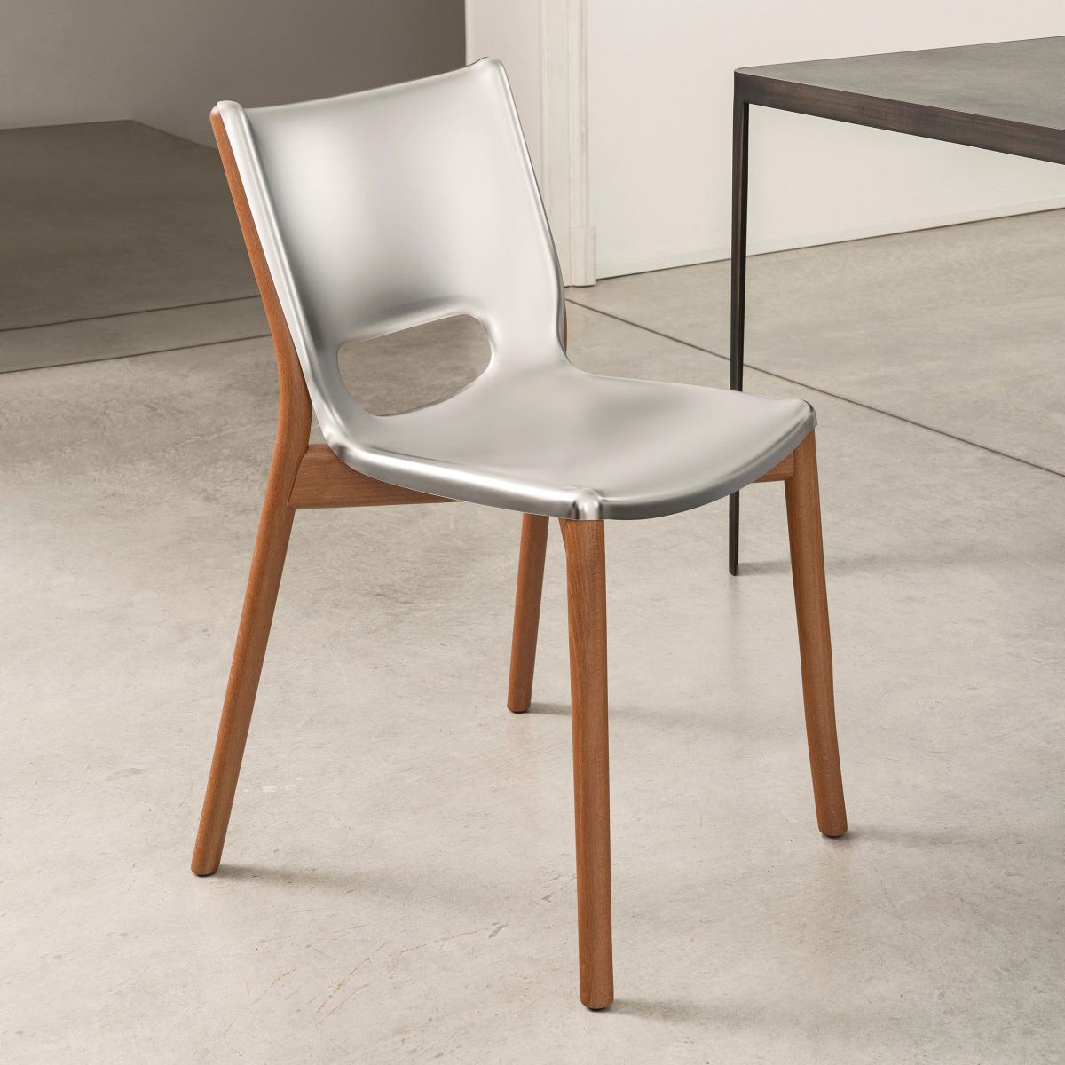 This chair from the Poêle collection offers a sleek, contemporary look that pairs well with a variety of interiors, from minimalist modern to more eclectic spaces. I love its clean lines and subtle mix of materials-metal for the shell and warm wood legs-that add visual interest without overwhelming the room. It works particularly well as an accent piece in dining rooms, home offices, or even as a statement salon chair. For styling tips, consider pairing it with textured cushions or placing it against contrasting upholstery to highlight its sculptural form. Its simplicity makes it versatile, allowing it to seamlessly fit into both neutral and colour-rich schemes, while acting as a sophisticated focal point.