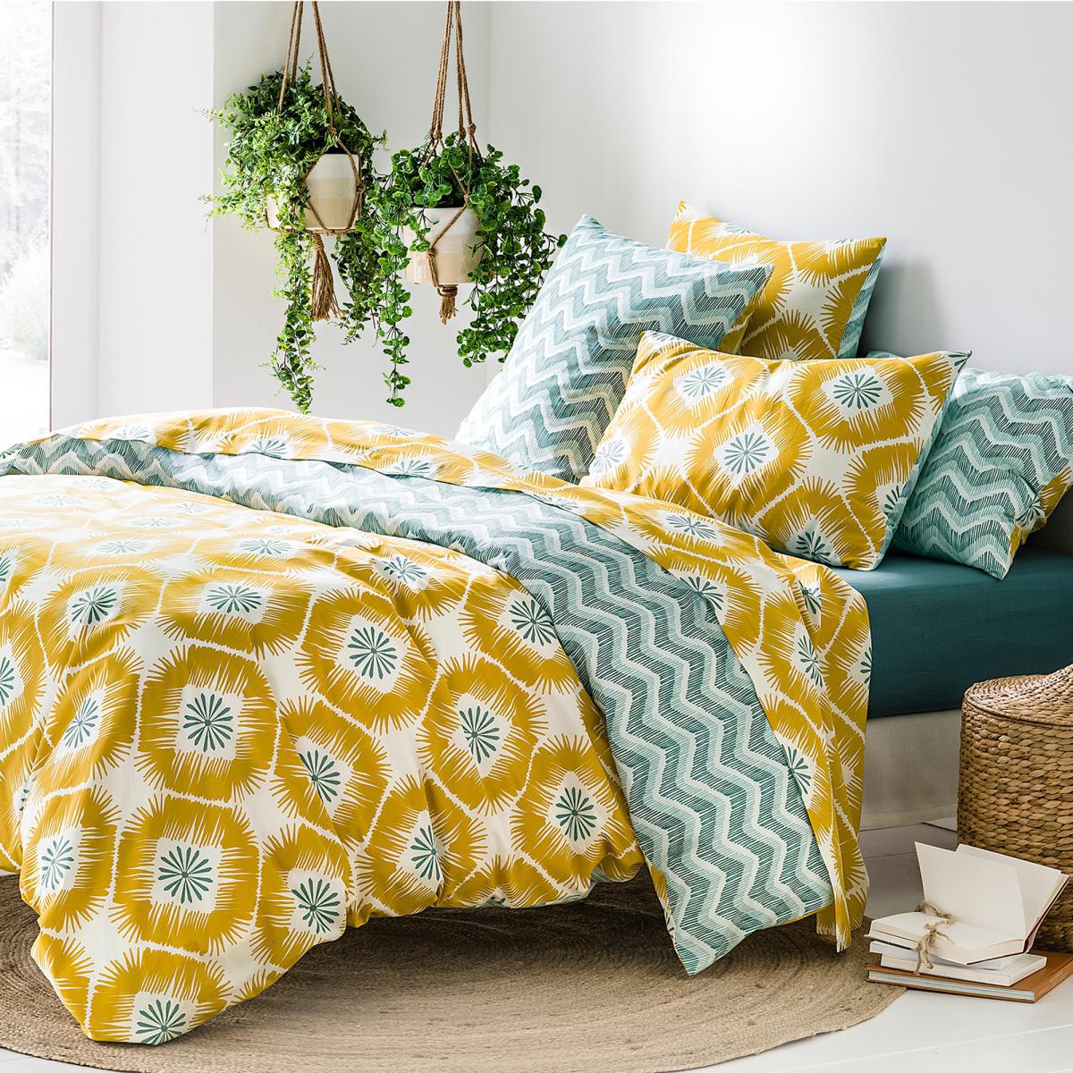 The Pogs print duvet is a fresh, vibrant choice that works particularly well in relaxed, contemporary interiors or boho-inspired spaces. I love its lively yellow and soft blue palette - it instantly lifts the mood of a bedroom without overwhelming. Pair it with neutral bed linens or add a contrasting throw in a neutral tone to keep the look balanced. It also pairs nicely with wicker or rattan furniture, making it ideal for a casual, sun-filled bedroom. For practical styling, stick to simple, solid-coloured accessories to let the print shine, and consider adding some textured cushions or a cosy throw for extra layering and comfort.