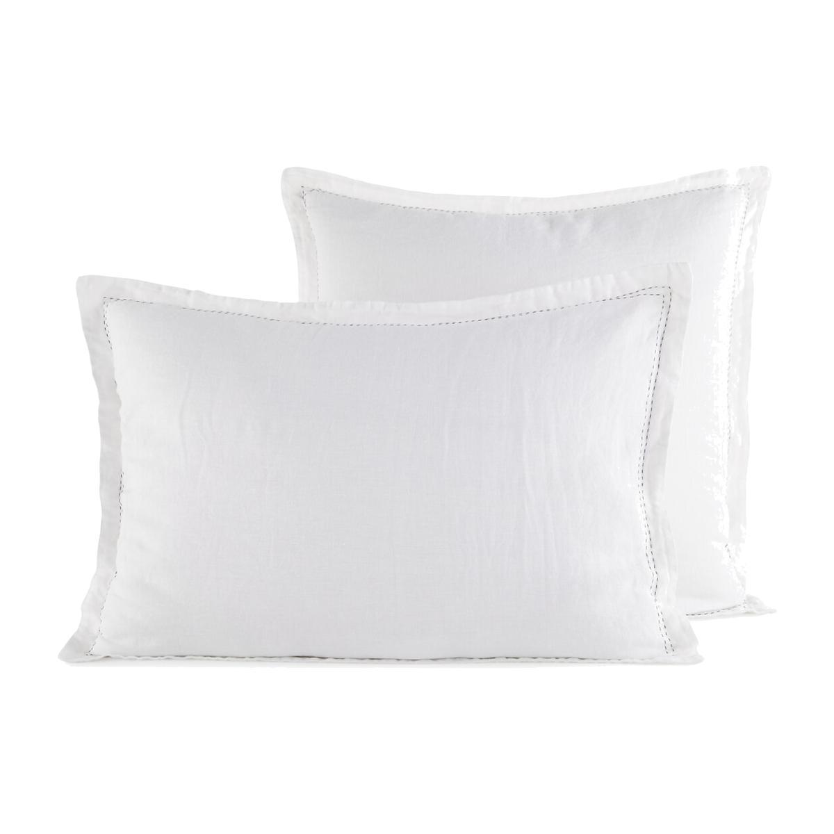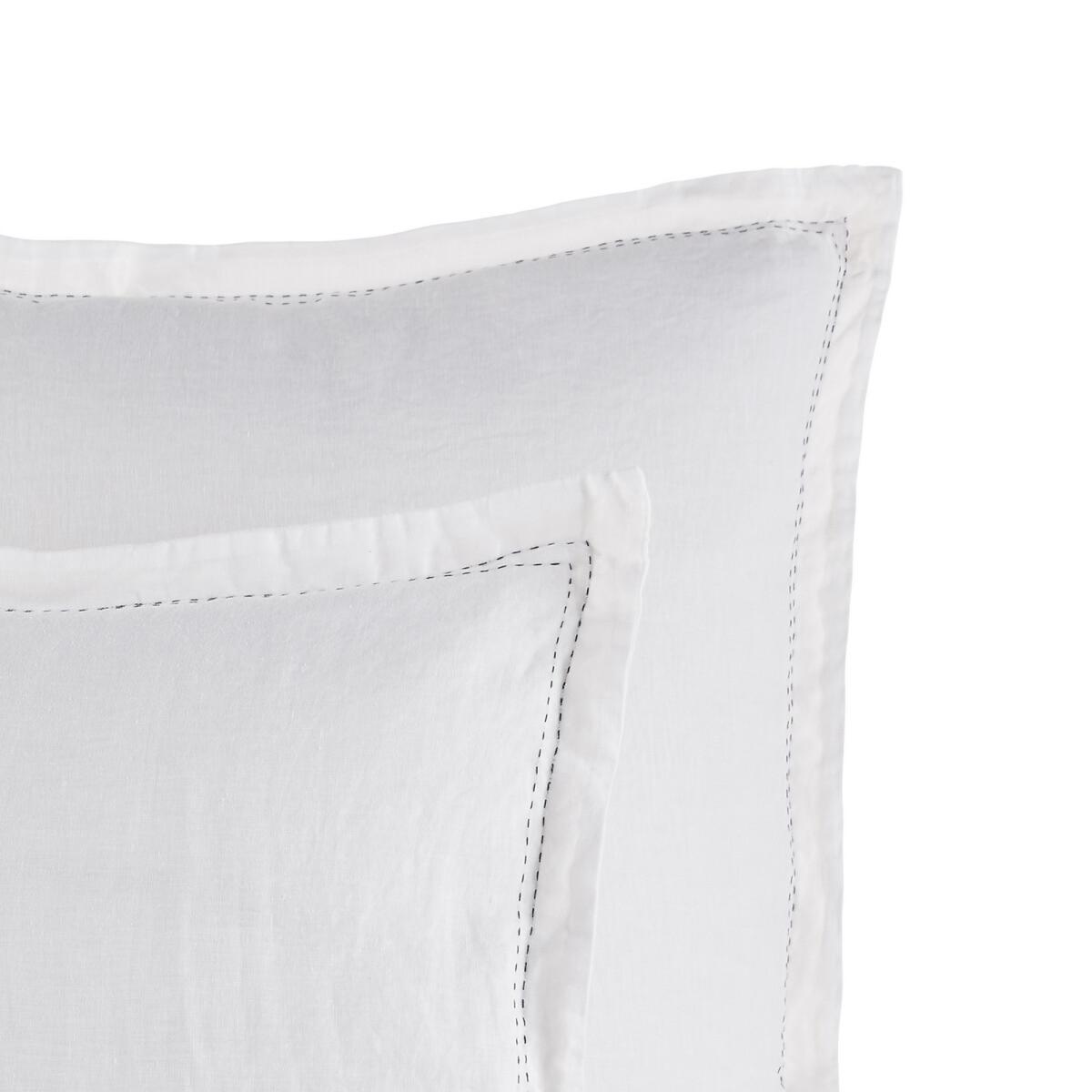 The Pointegga pillowcase in washed linen. This immaculate white bedding is accentuated with delicate black/grey stitching embroidery.