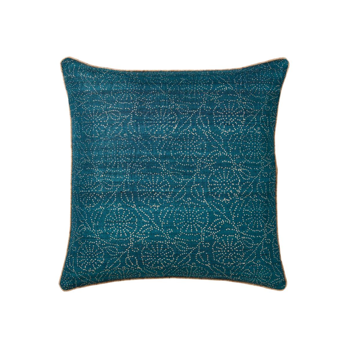 A pretty cushion cover that takes you back to join the dots, with every detail woven by hand. Multiple dots spell out an intricate floral design, which decorates a pure silk base. Pointillism Floral Cushion Cover - Teal