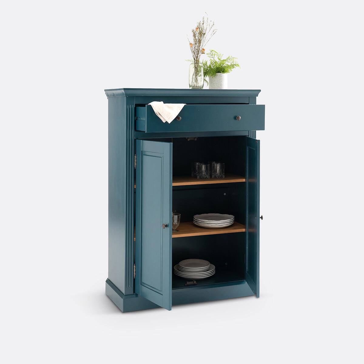 A classic piece of furniture revisited in a family house spirit. The Parisian Poiret sideboard, in painted solid pine, adds a touch of nostalgia and romanticism to your interior. Created by La Redoute Interiors. Product Details • In solid pine and MDF, satin paint finish with acrylic varnish • Aged metal button handles • 2-door sideboard, 2 removable (lightly brushed pine finish) and adjustable shelves, 3 niches and 1 drawerDimensions. Overall • Length: 93.6cm • Height: 134cm • Depth: 41.5cm. Usable space • Drawer: L71.6 x H13.7 x D35cm • Compartment (without shelf): L85 x H92.5 x D35.5cmDelivery:. Assembly required. Available for home delivery. Note! Please check that all access points are large enough to accommodate your delivery (doors, stairs, lifts). • WOOD FROM MORE SUSTAINABLY MANAGED FORESTS AND CONTROLLED SOURCES. FSC® Mix wood contains at least 70% FSC® certified and/or recycled wood, the remainder being FSC® controlled wood. Dimensions and weight of parcel2 parcels • L108.8 x H49.4 x D15cm. 27kg • L139.6 x H51.4 x D96cm. 23kg