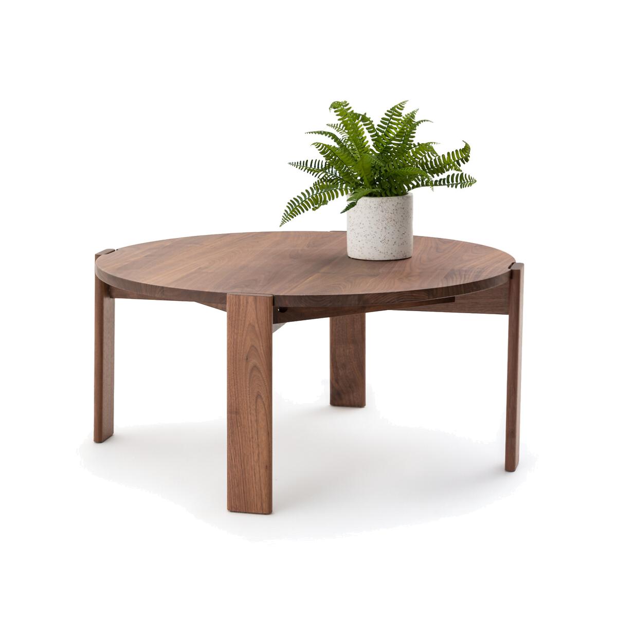 Modern and minimalist: The Pokhara solid walnut coffee table brings softness and elegance to the decor. Designed by La Redoute Interiors.