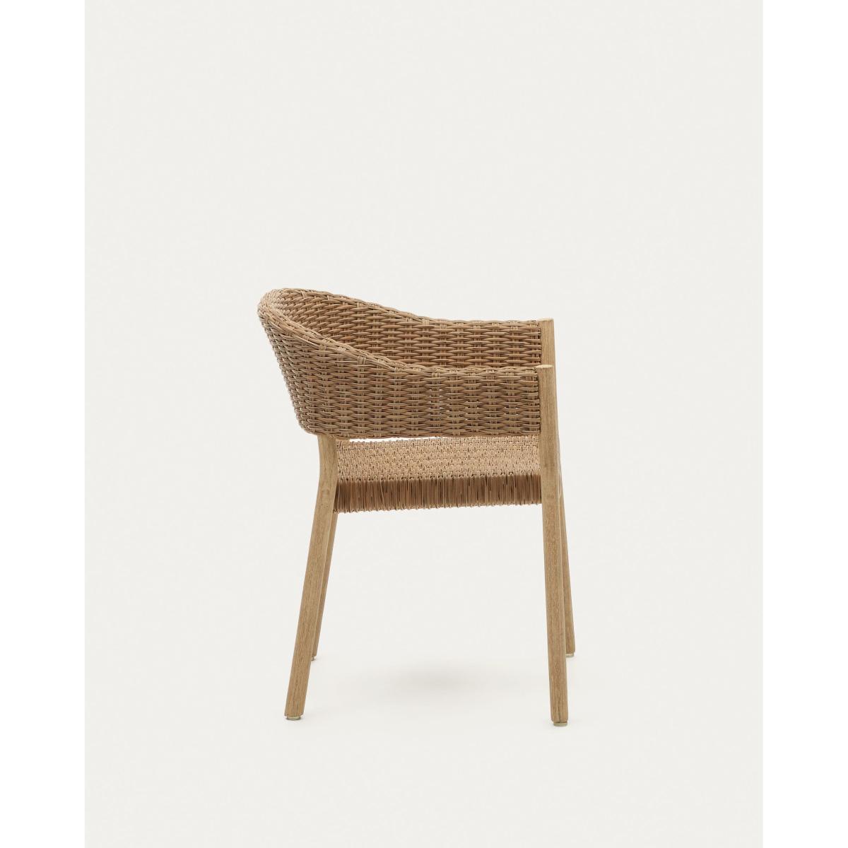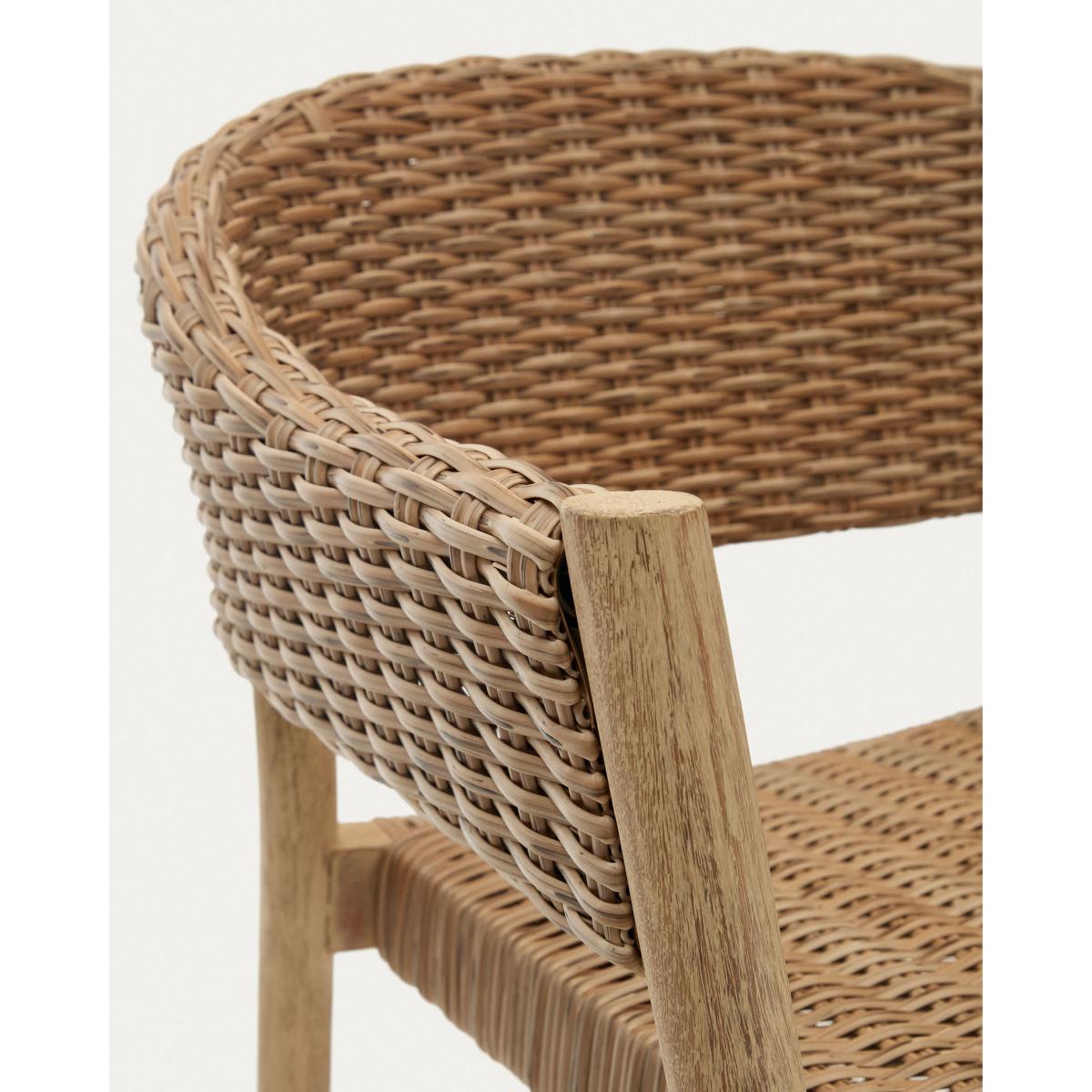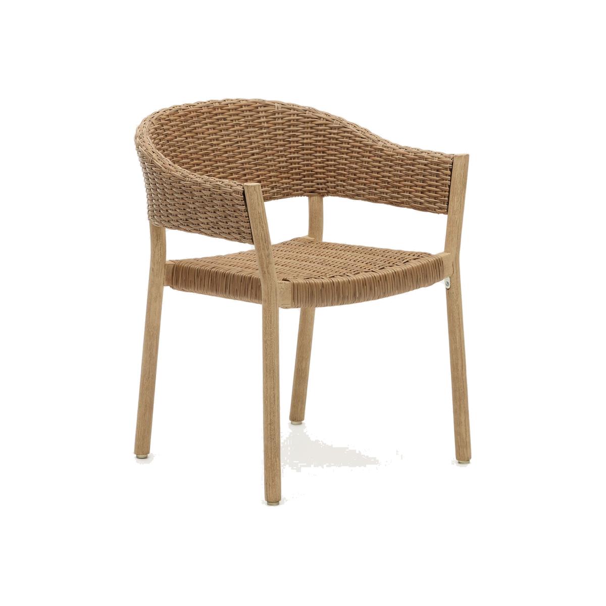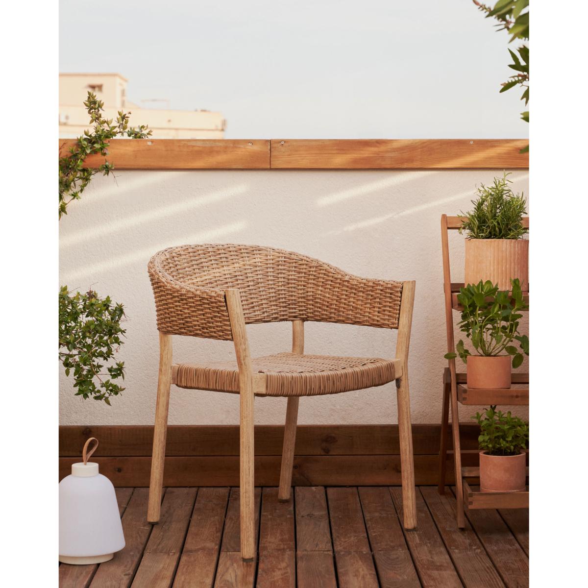 Pola 100% outdoor stackable chair in solid eucalyptus and faux-rattan with a natural finish, FSC
