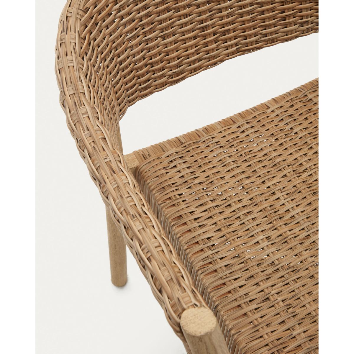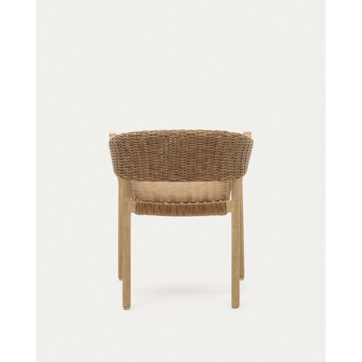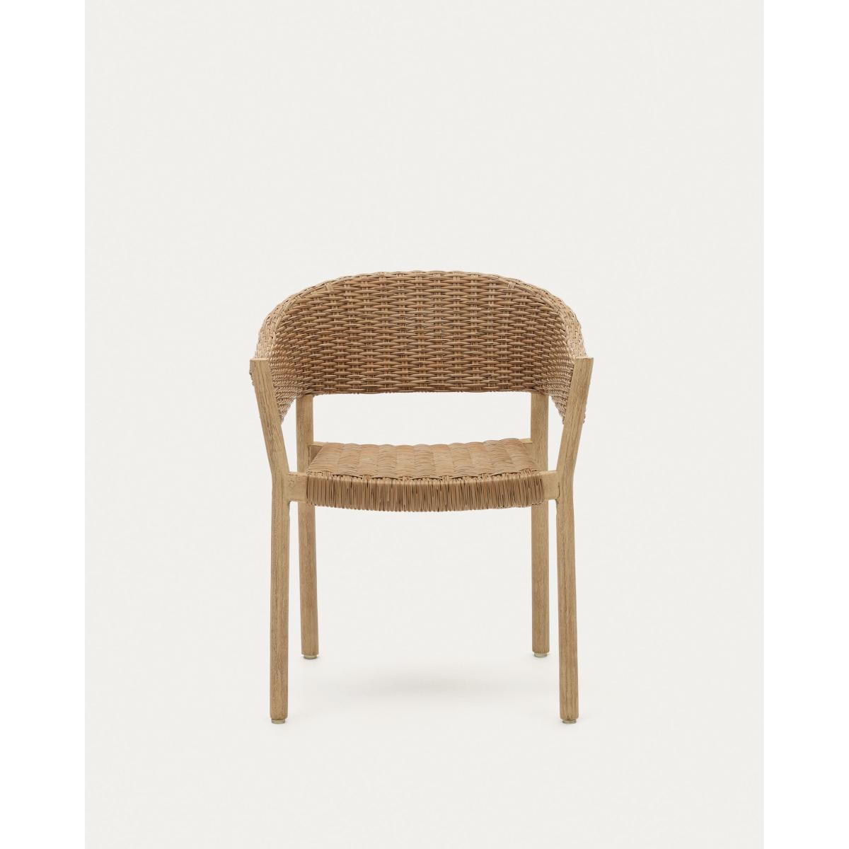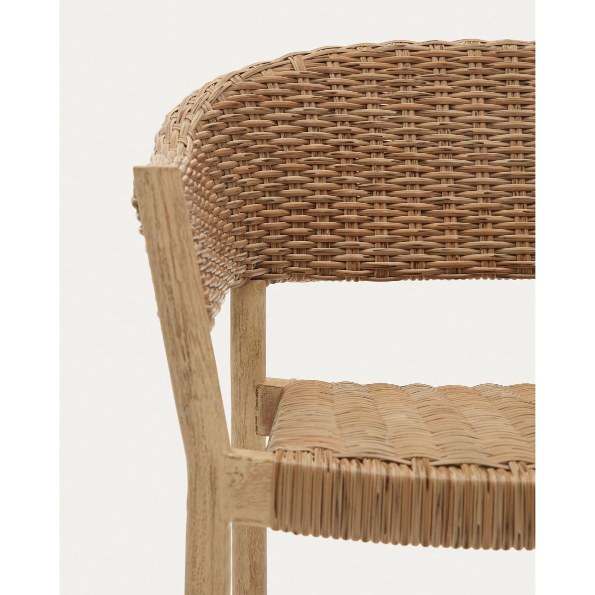Pola 100% outdoor stackable chair in solid eucalyptus and faux-rattan with a natural finish, FSC
