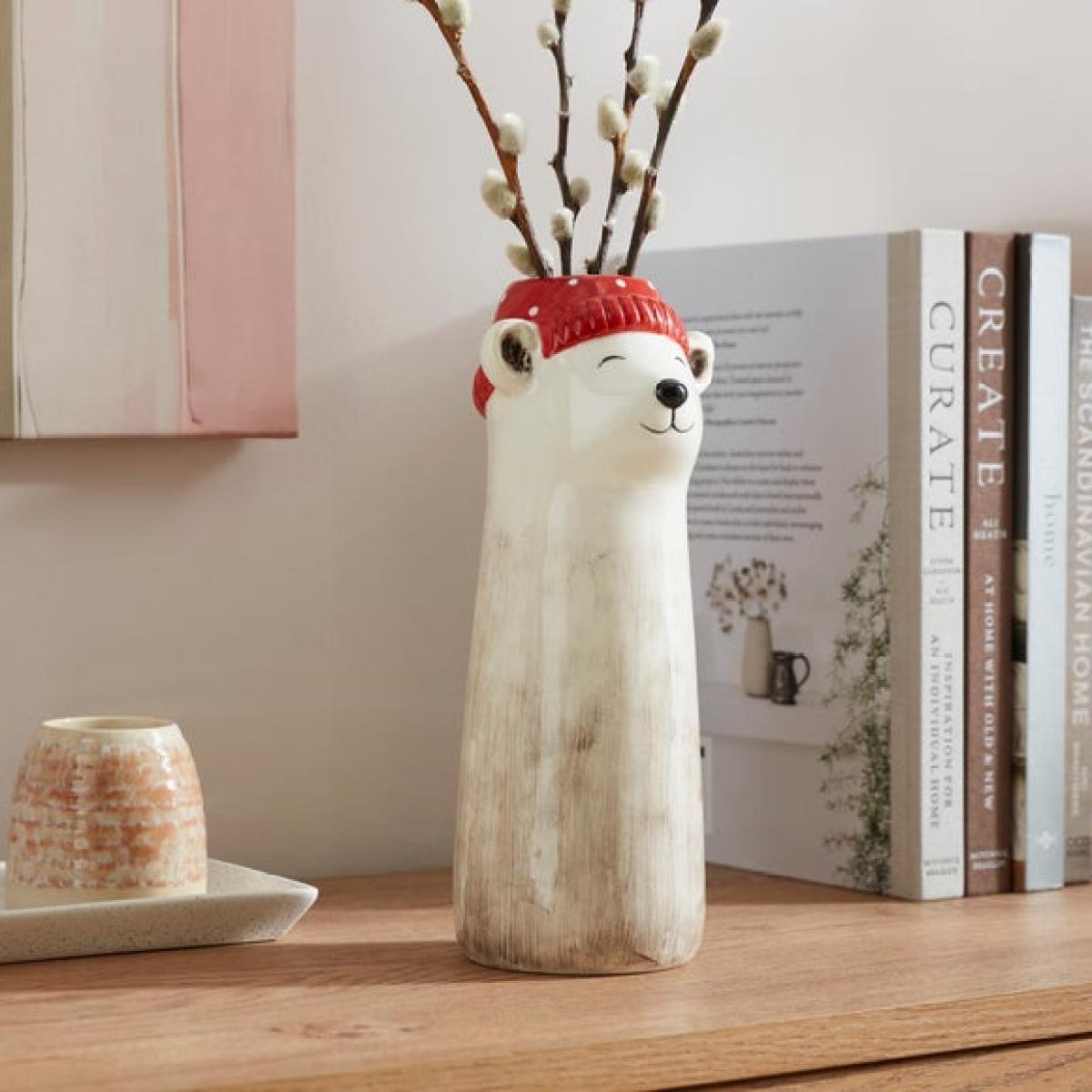 I think the polar bear vase is a charming accessory that works especially well in cosy, neutral-toned interiors or among nature-inspired decor. Its playful design adds a touch of personality without overpowering other elements. It’s versatile enough to sit on a mantlepiece, sideboard, or coffee table, and it’s perfect for holding fresh or faux flowers-think twigs or dried blooms for a more seasonal, rustic look. To style it effectively, consider pairing it with soft textiles and natural materials to emphasise its woodland vibe, or let it stand out as a statement piece on its own for a more minimalist feel. It’s a practical yet quirky addition that can bring character to a variety of settings.