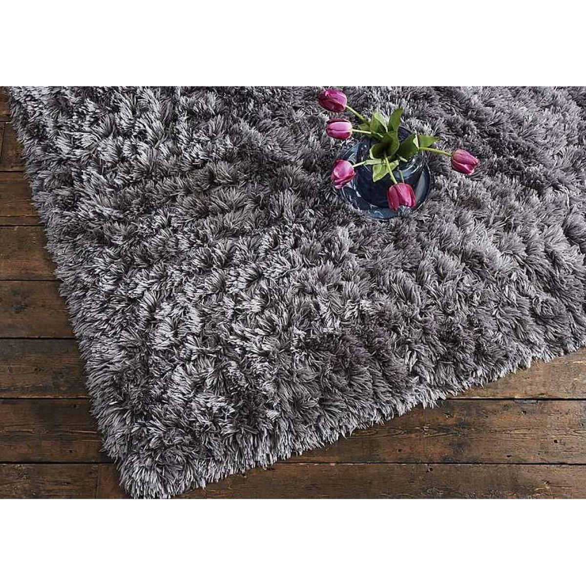 Super soft and luxurious, this contemporary rug will add comfort and style to any room. Hand tufted thick and long shaggy pile. Thickest and longest shaggy pile rug. Polar grey. 100% Micro fibre Acrylic. High density treated yarn. Hand tufted.