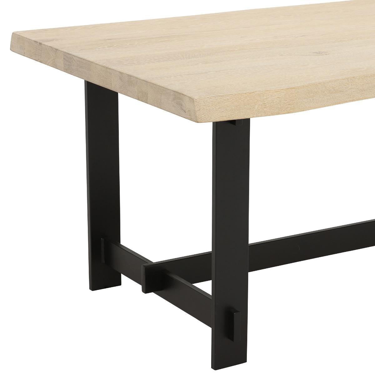 I love the stark contrast between the light wooden top and the black metal frame, which makes this table versatile for a range of interiors from industrial to Scandi style. It works particularly well in open-plan kitchens or dining areas where it can be styled with simple, understated chairs or bench seating. For practical styling, consider layering with textured placemats, a centrepiece like a vase of greenery, or even a runner to add warmth. Its clean silhouette makes it a flexible piece that can be dressed up or down, making it ideal for casual family dinners or more formal occasions. To maximise its potential, keep surrounding decor minimal, allowing the table itself to be a subtle focal point within your space.