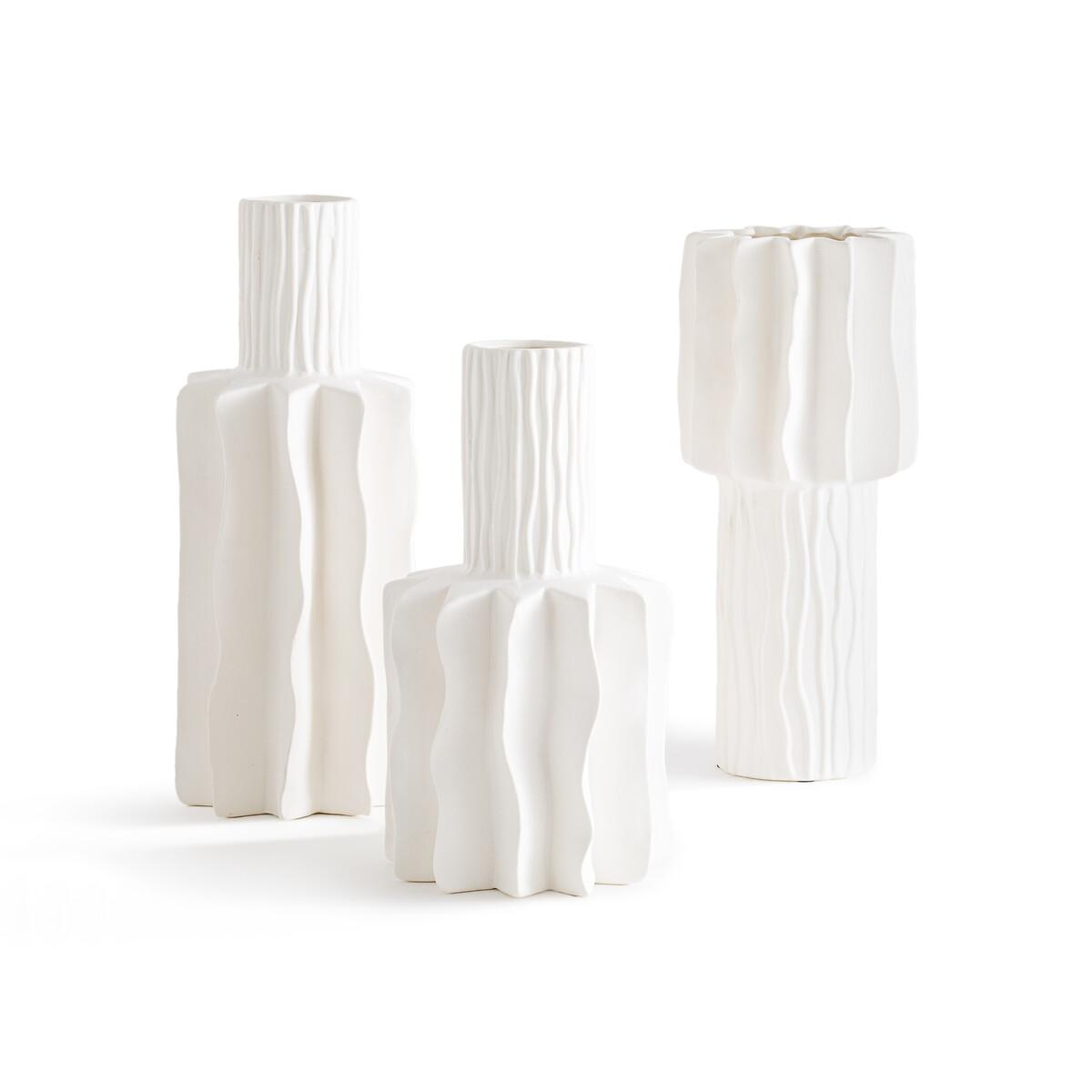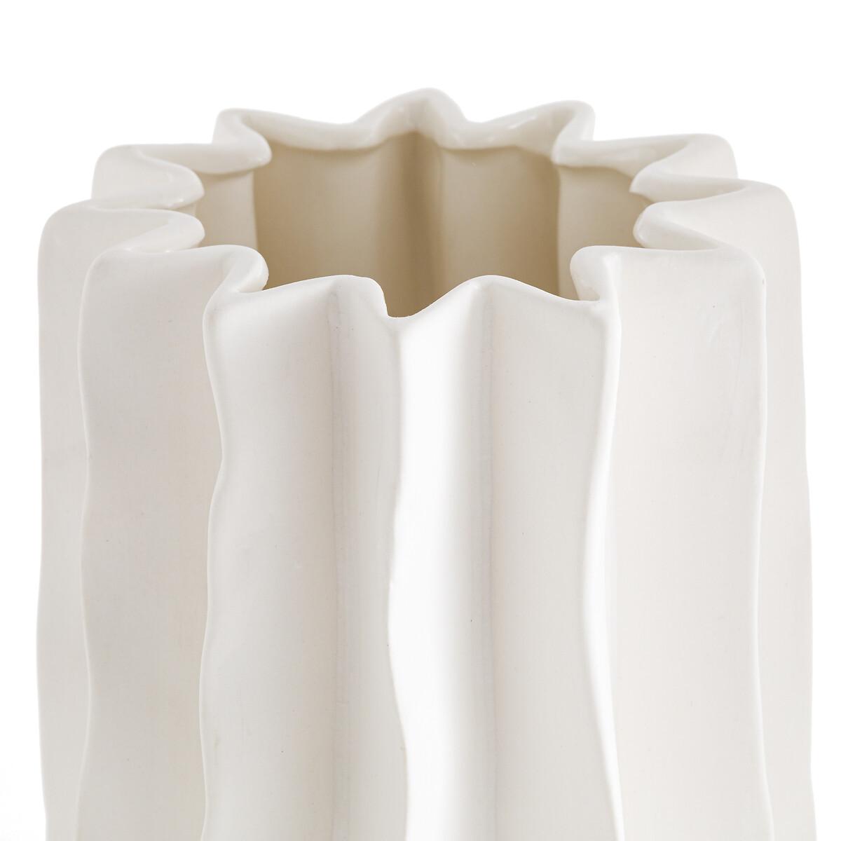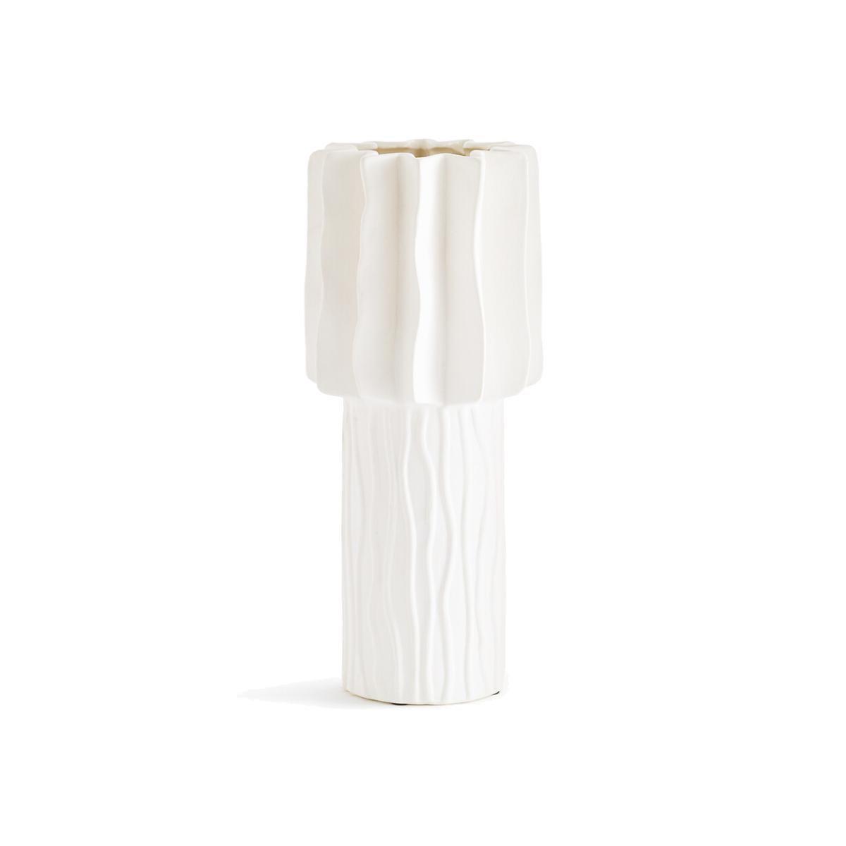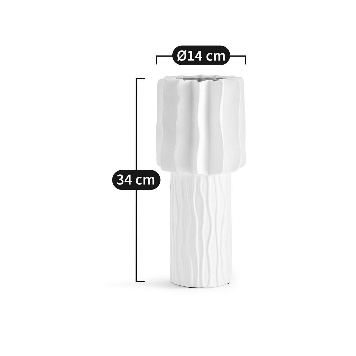 From the first look, this vase has a striking feel. thanks to its wavy variations and the roughness of its material. Deliberate imperfections that give it a unique look. Each piece is unique. This ceramic vase will reveal all the power of its design on a living room piece of furniture. Sculptural without being imposing. Product Details • In matte ceramic • Each piece is unique, colours may vary from one vase to another. Care Advice • Ceramic is a solid material resistant to shocks, scratches and stains.. It can be cleaned with a damp sponge. Dimensions • Diameter: 14cm • Height: 34cm Parcel dimensions and weight • 1 parcel • L20.5 x H41 x D20.5cm