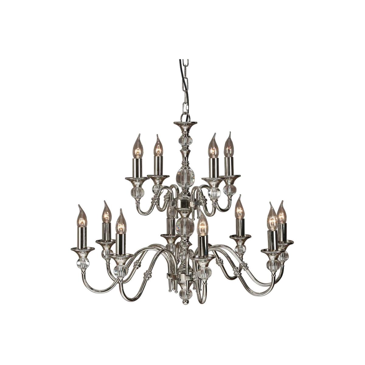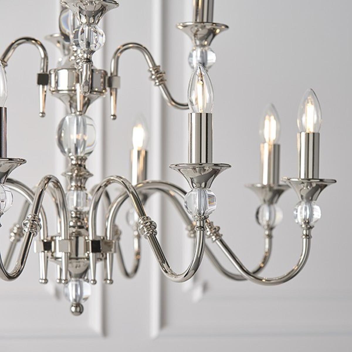 Polina 12 Light Chandelier Polished Nickel Plate Crystal Finish, E14 - Polished Nickel Plate