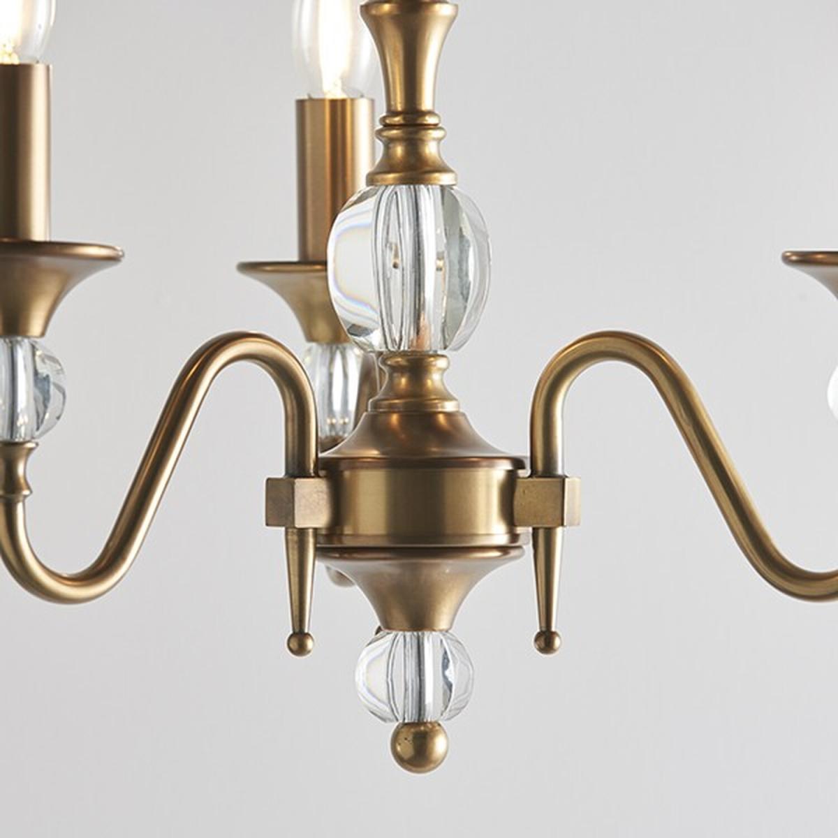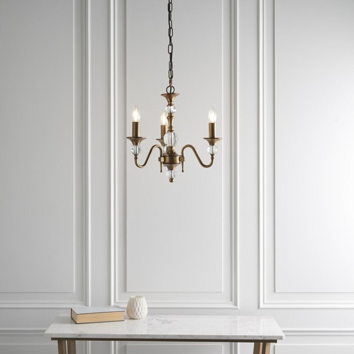 Polina 3 Light Ceiling Pendant Chandelier Antique Brass, Crystal, E14 - Antique Brass