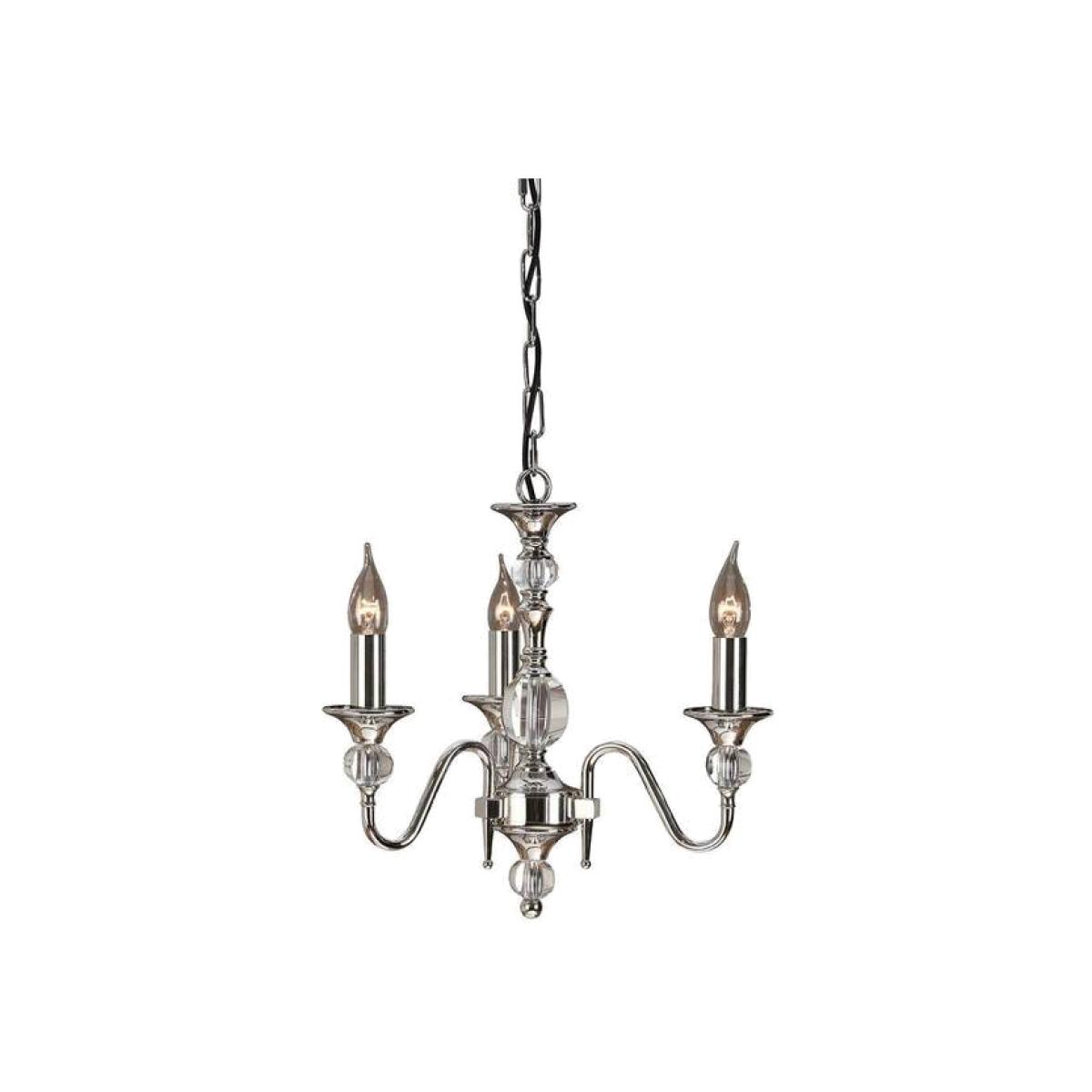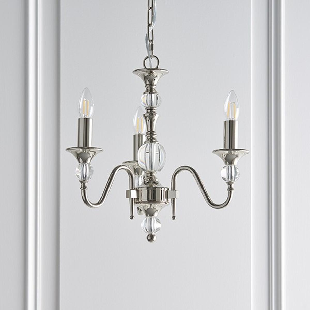 Polina 3 Light Ceiling Pendant Chandelier Polished Nickel, Crystal, E14 - Polished Nickel Plate