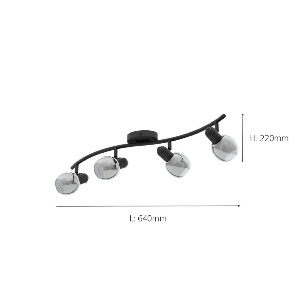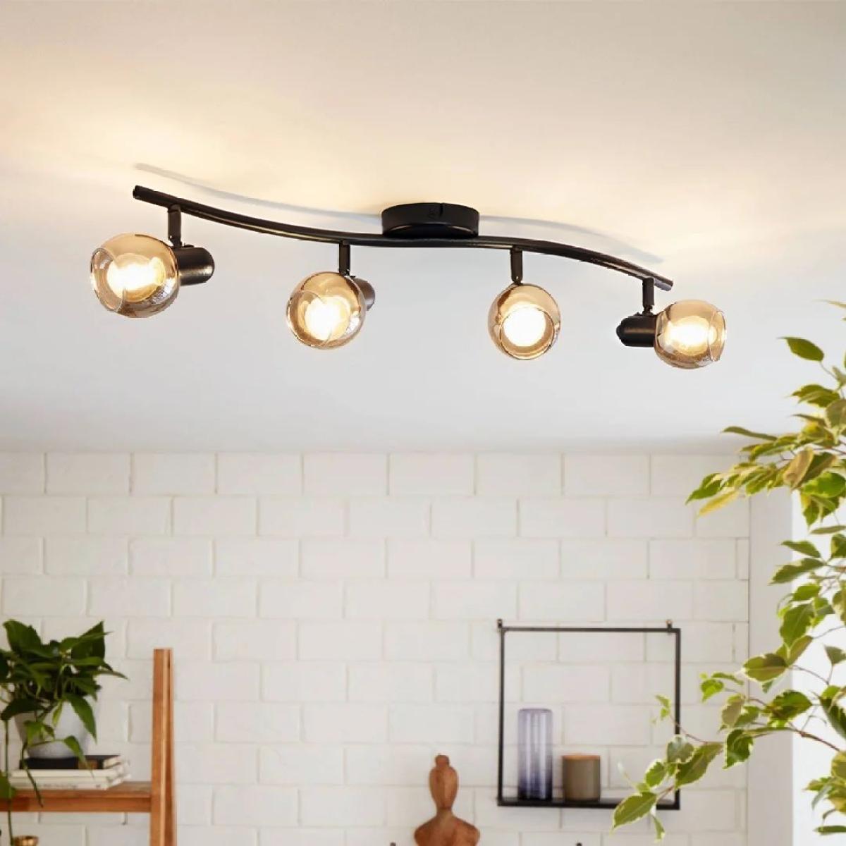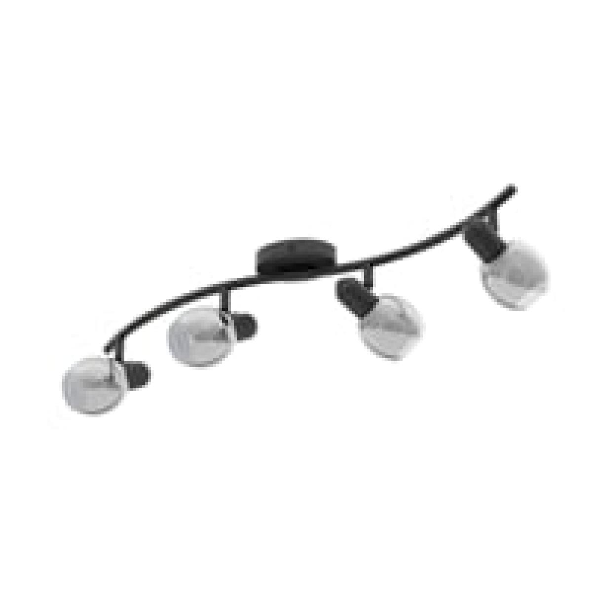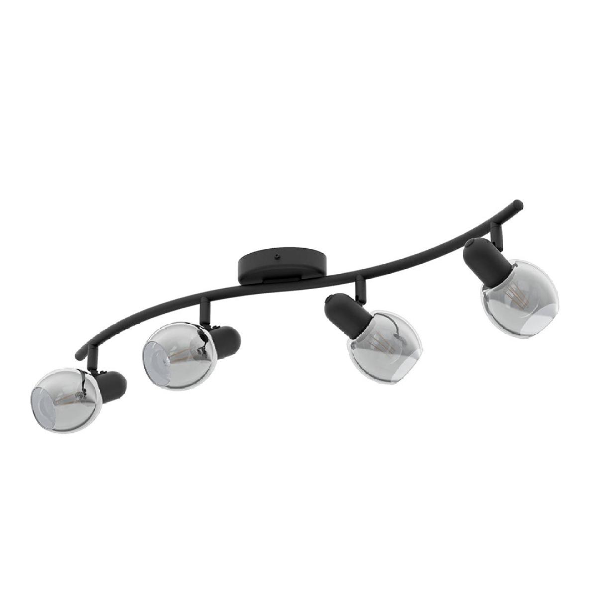 Modern and sleek 4 light spotlight ceiling bar Stylish spotlight bar with a contemporary design from Lighting. The Pollica 4 light spotlight bar features 4 smoked glass spotlight heads and matt black finishing. Each light is adjustable to allow the light to be directed where needed. Ideal for in kitchens, hallways and dining areas.  Modern and sleek 4 light spotlight ceiling bar Stylish spotlight bar with a contemporary design from Lighting. The Pollica 4 light spotlight bar features 4 smoked glass spotlight heads and matt black finishing. Each light is adjustable to allow the light to be directed where needed. Ideal for in kitchens, hallways and dining areas.