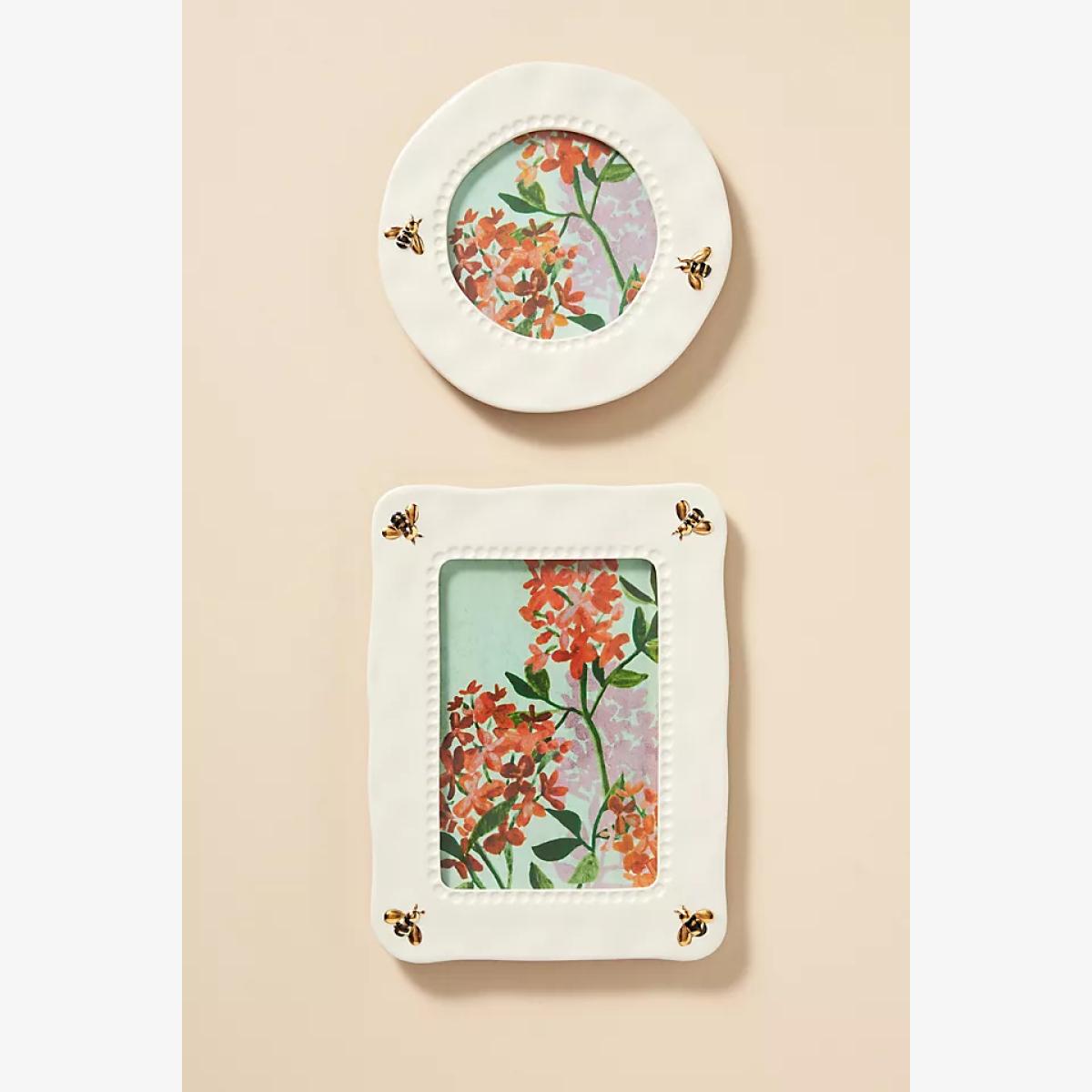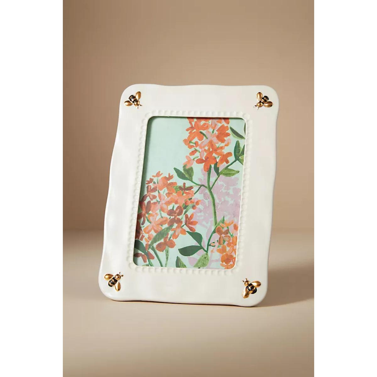 Nestle your most cherished memories within this bee lightful handpainted picture frame. Pollinator Frame by Anthropologie in White Size: 4 x 6