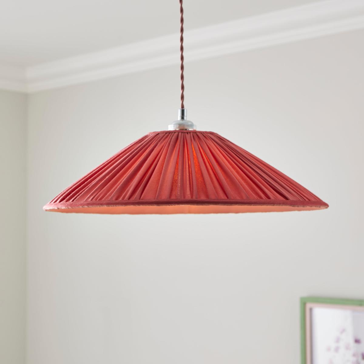 * Lovely Pleated Design* Quirky Tapered Shape* Made from Polyester* Easy Fit - No Electrician Required* Available in Multiple Colourways Unique and quirky in design, the Polly Pleated Tapered Lamp Shade is ideal for bringing an eye-catching flair to your ceilings. It's made out of durable polyester, is easy to install, and offers a variety of colour options to choose from!
