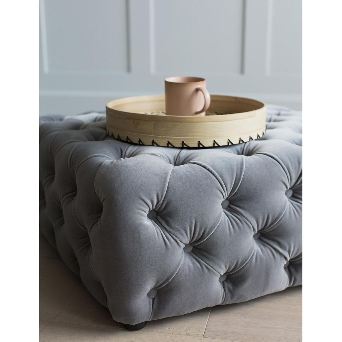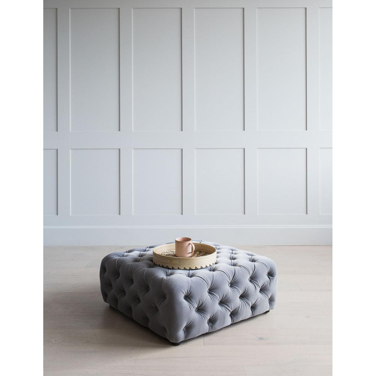 The perfect companion to our Hugo and Albert sofas or Bertie armchair, this deep buttoned pouffe is a multi-functional piece that can help to save space. The Polly can be used as a place to rest your feet, an extra seat for guests or a surface to lay down a tray of drinks, dependent on your needs. The beautifully crafted pouffe features a button-and-stud timeless design that can be given a more contemporary spin by opting for a vibrant velvet fabric. Photographed here in Platinum Velvet. All other images are computer generated as a colour reference. We recommend you order a free fabric swatch to see your chosen material up close before ordering your sofa, armchair or footstool!