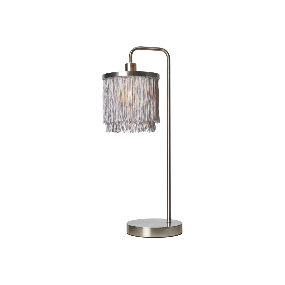 Polly Table Lamp with Grey Fringed Shade - Satin Nickel