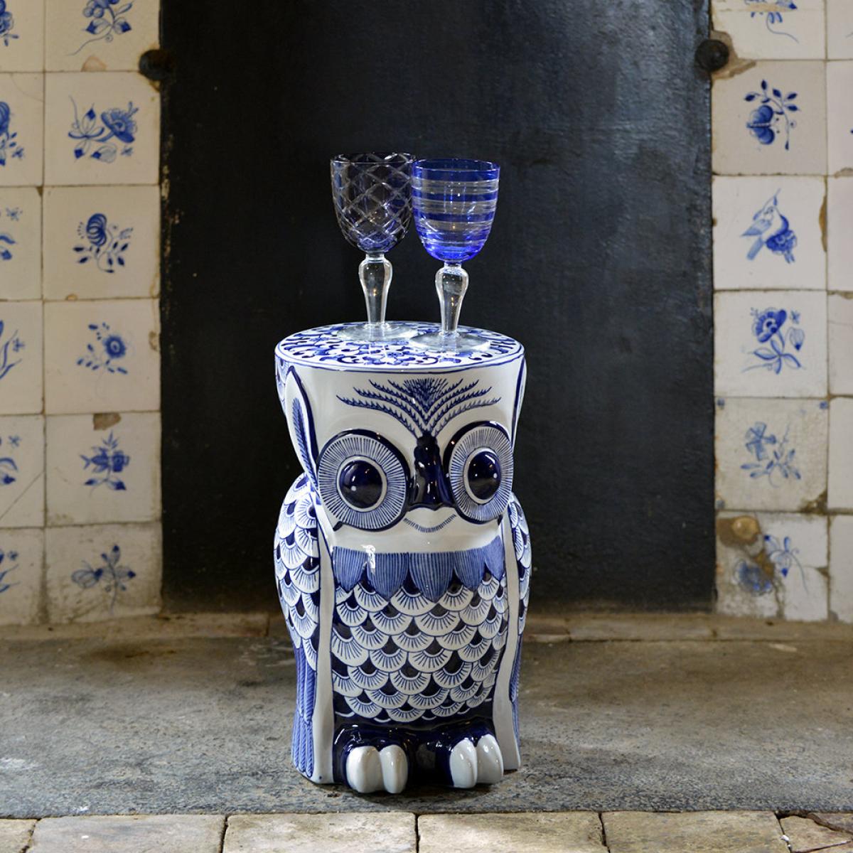 Pols Potten - Blue Porcelain Flower Owl Stool
