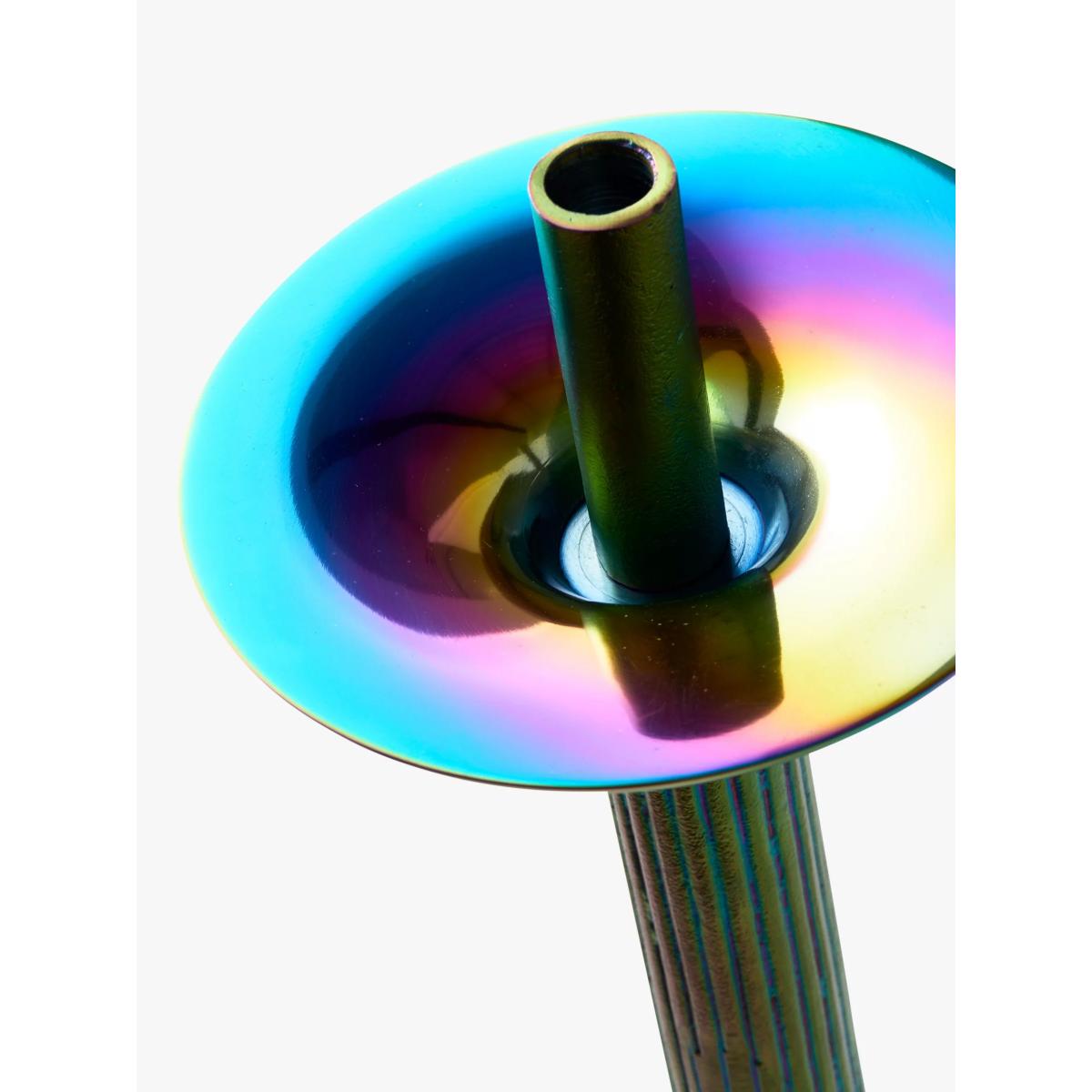 I love this pols potten candlestick for its striking iridescent finish, which adds a contemporary and playful touch to any interior. It works particularly well in eclectic, modern, or industrial schemes where a pop of colour and metallic sheen can enhance the overall aesthetic. For styling, try pairing it with simple, neutral candle holders or complementing it with accessories in similar hues for a cohesive look. Its eye-catching surface makes it ideal as a standalone feature on a mantle or side table, but it also pairs nicely with softer textures like linen or velvet to balance the reflective surface. Keep the surrounding decor minimal to let the candle holder be the star of the display.