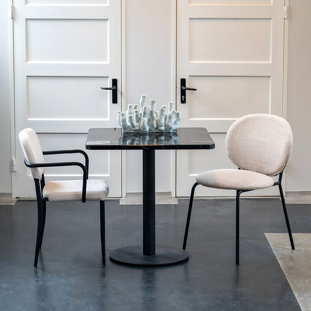 Take a seat in style with the Jamie fabric chair from Pols Potten. Upholstered in a soft and comfortable fabric, it provides the perfect seating solution for your home. Complete with two armrests, this chair makes an ideal dining chair or stunning accent chair.