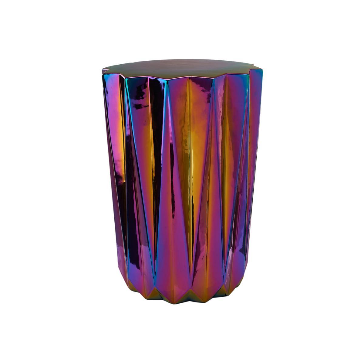 Make a statement in your interior with this Oily Folds stool from Pols Potten. Featuring a wonderfully unique geometric form, this stool is adorned with a stunning iridescent finish that beautifully reflects different colours depending on the light. A welcome addition to any stylish home, the Oily Folds stool looks fabulous as a stool, side table or accent piece in any room. Pair it with complementing home accessories available separately from Pols Potten to stylishly coordinate your space.