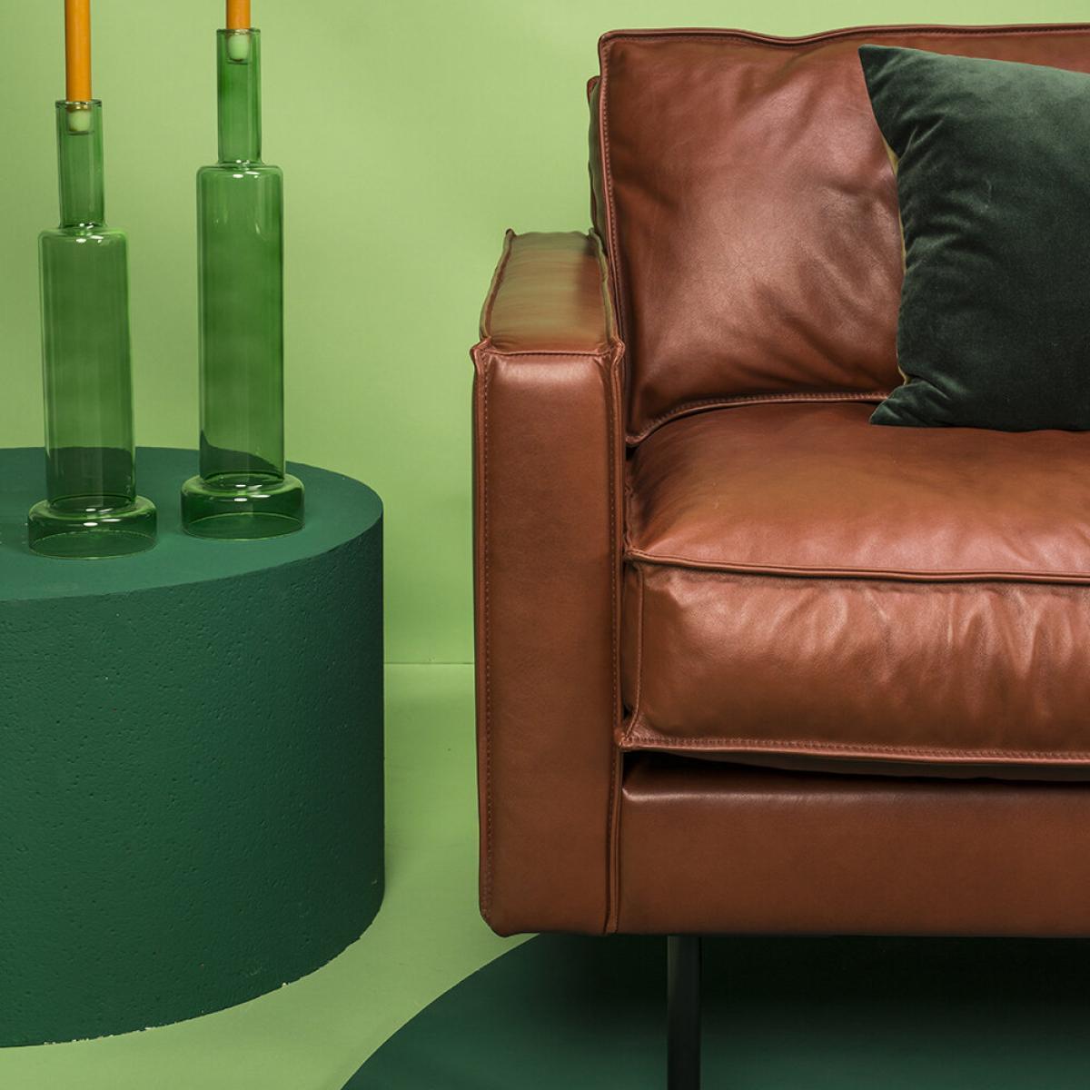 Lounge in style with this PPno.1 Leather Loveseat from Pols Potten. Designed for two people, this full-bodied seat is perfect for relaxing on after a long day. Experience pure comfort thanks to the foam and duck down cushioning. Pair with the matching PPno.1 Leather Sofa for a coordinated look. Key features: * Material: laminated wood, powder coated metal legs * Upholstery: leather * Dimensions: W126.5xD86xH88cm * Brown colour * Black legs * Foam & duck down cushioning