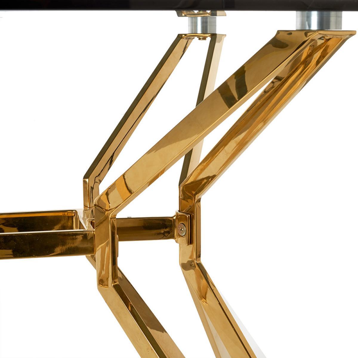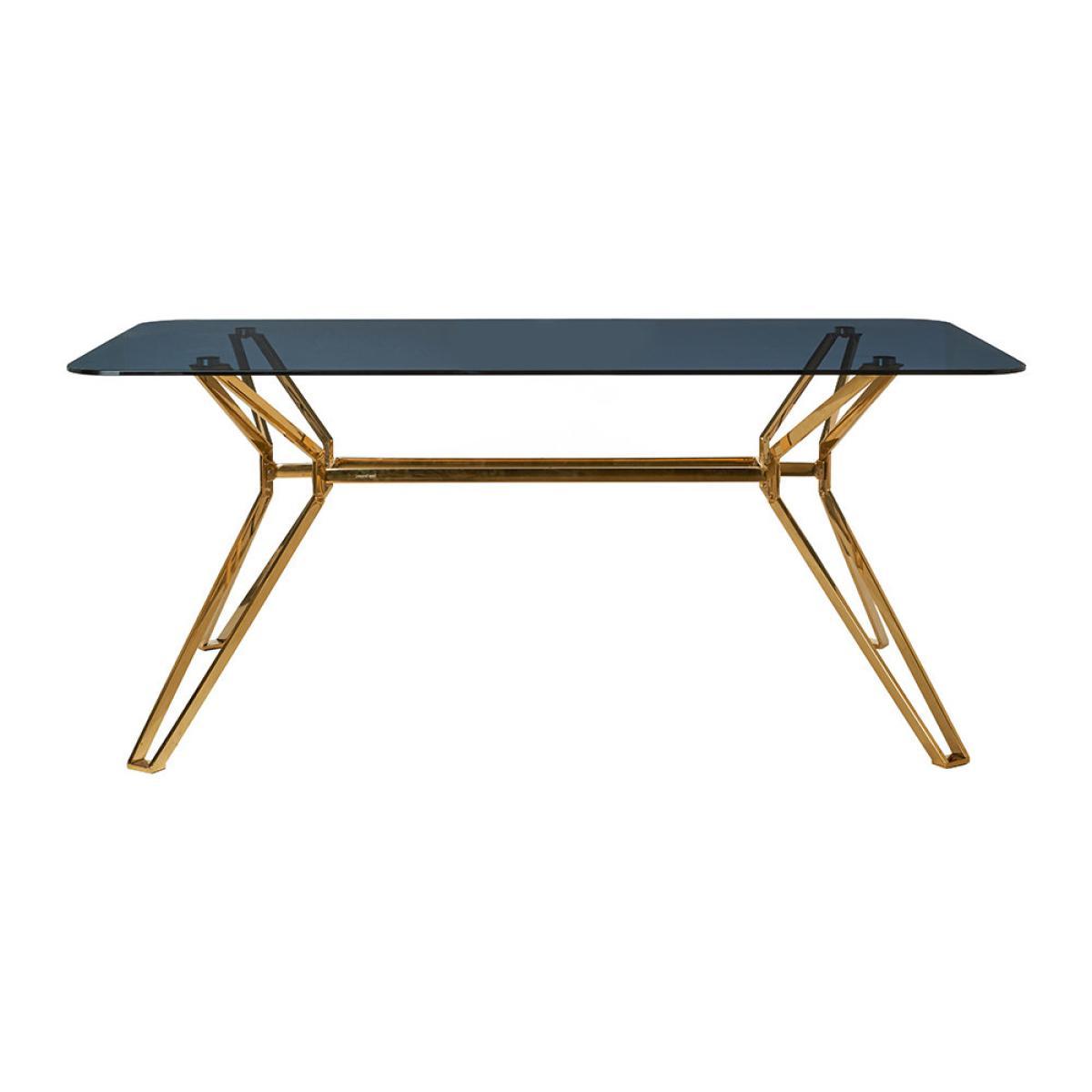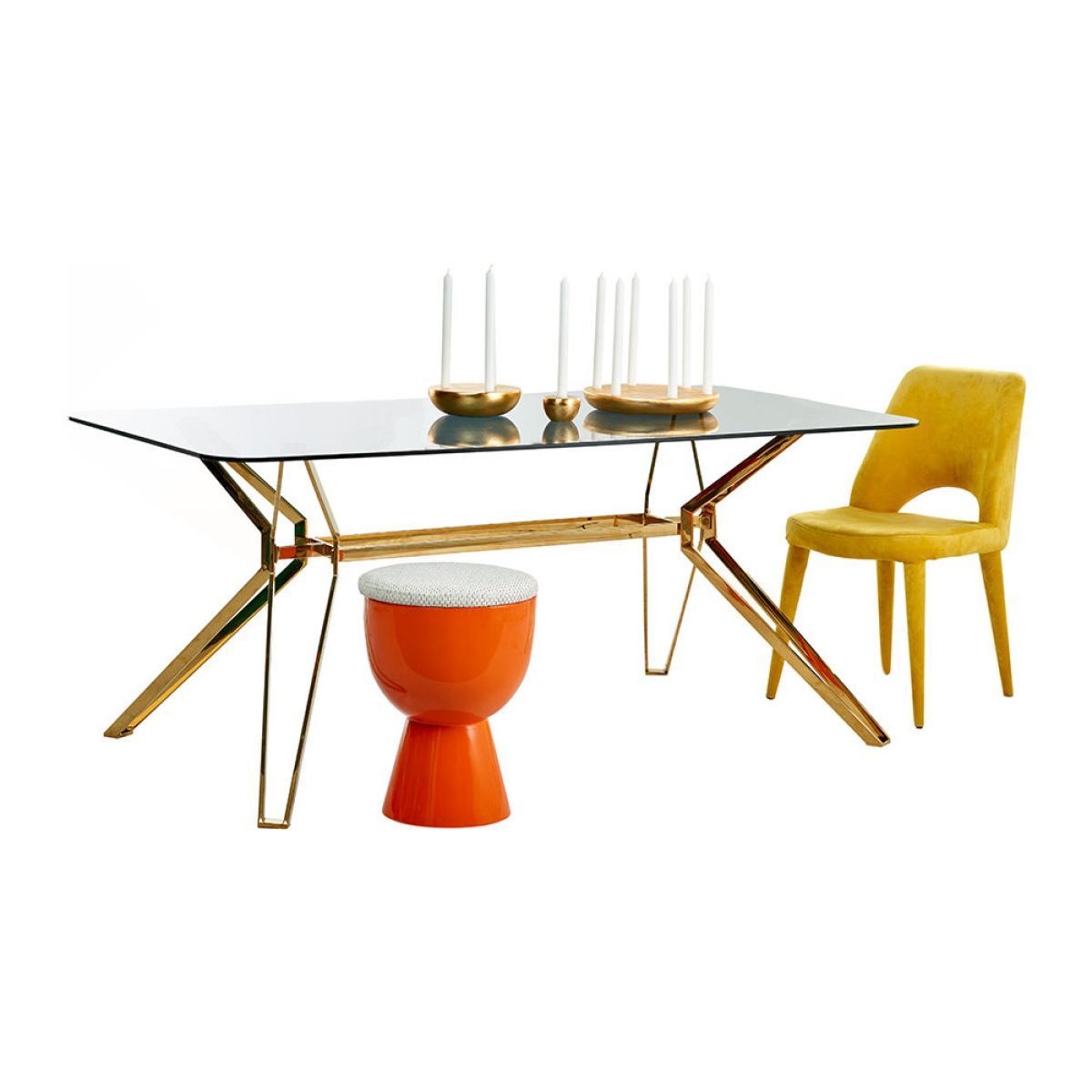 I love this glass top table for its sleek, modern aesthetic and the striking contrast between the transparent surface and the gold legs. It’s versatile enough to work in both contemporary and eclectic interiors, adding a touch of luxe without feeling overly formal. The rectangular shape maximises space and makes it practical for everyday dining or styling with a mix of statement dinnerware and accessories. When styling, consider pairing it with upholstered chairs in neutral tones to keep the look sophisticated, or add colour with bold cushions and fresh flowers for a more vibrant vibe. The gold legs act as a great focal point and work well with other metallic accents in the room. Keep accessories minimal on the table to preserve its clean, elegant appeal.