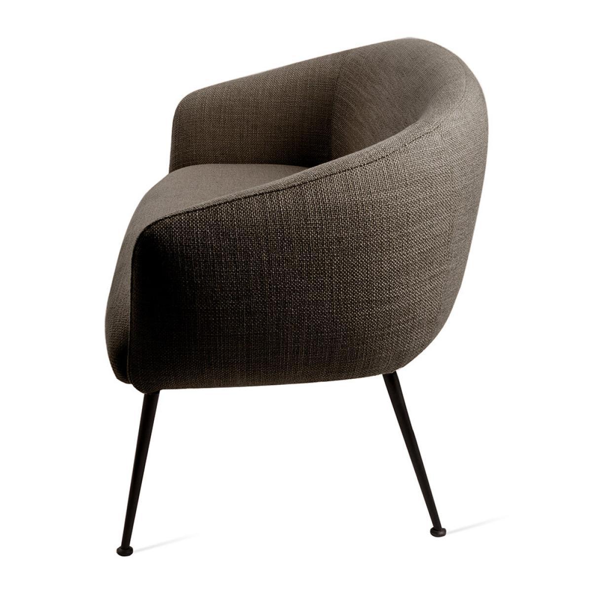 I love this sofa buddy for its sleek, contemporary design and versatile dark grey hue, which makes it easy to blend into a variety of interiors. It works particularly well in modern or minimalist spaces due to its streamlined silhouette, but can also add a touch of sophistication in eclectic or industrial schemes. For practical styling, consider pairing it with rounded or geometric cushions in contrasting textures or colours to create visual interest. Placing it in a cosy corner or as a standalone piece in a lounge allows its subtle elegance to shine. Its slim legs and curved form give it an approachable yet refined aesthetic that suits small to medium-sized rooms perfectly.