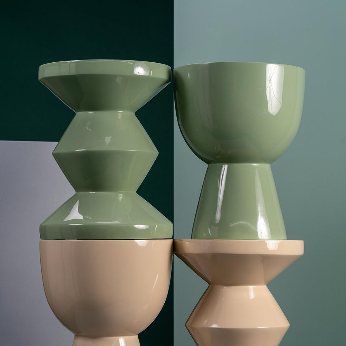 Add a touch of modern design with the Tam Tam stool from Pols Potten. With curves in all the right places, this round stool is available with a high gloss finish in a range of colours or in hand-carved wood for a more natural look. Whatever finish you choose, the simple shape provides a stunning statement for your home. Ideal for displaying as a decorative stool, or for using as a small side table. Key features: * Material: lacquered polyester * Dimensions: Ø35.5xH46cm * Water resistant * Sage green colour * Indoor use only