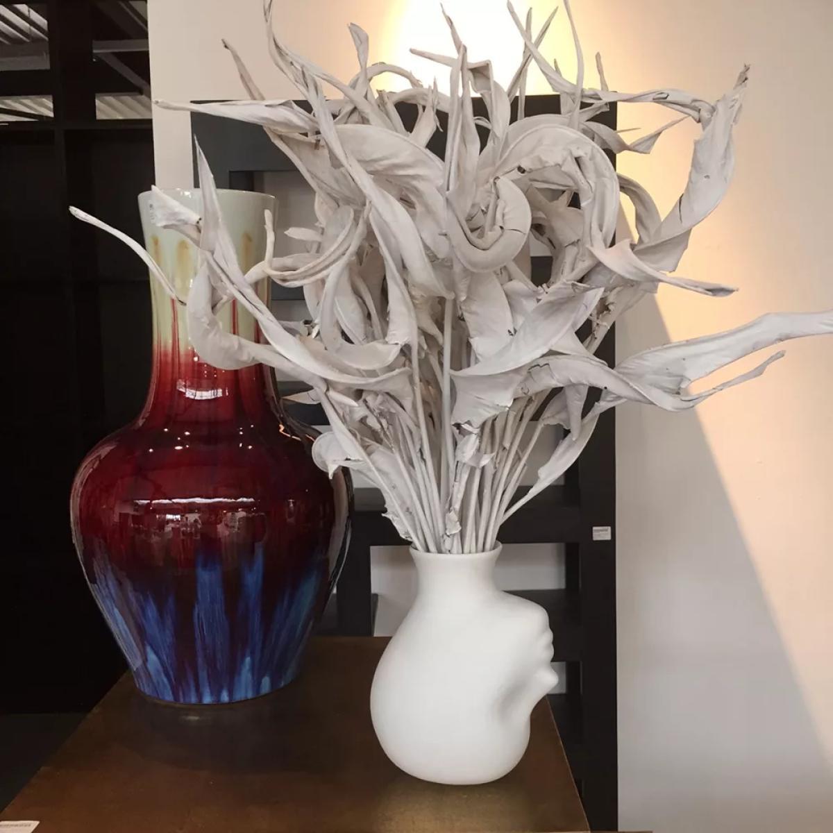 I love this quirky upside-down head vase because it adds a playful yet sophisticated touch to any interior. It works particularly well in contemporary or minimal spaces where its sculptural form can stand out, or in eclectic settings where it can serve as a fun conversation piece. For styling tips, try pairing it with a simple floral arrangement or lush greenery to inject colour and life. It also looks great positioned on a coffee table, shelf, or console, where it can be appreciated up close. Keeping the colour palette neutral or monochrome allows the vase's design to truly shine, making it a versatile addition to various schemes.