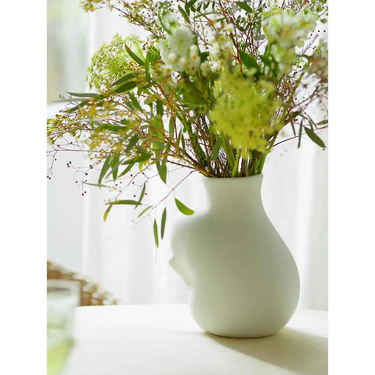 Add a unique touch to your home with this eccentric upside down head vase. Made from porcelain, this crisp white vase will contrast wonderfully against vibrant bouquets.