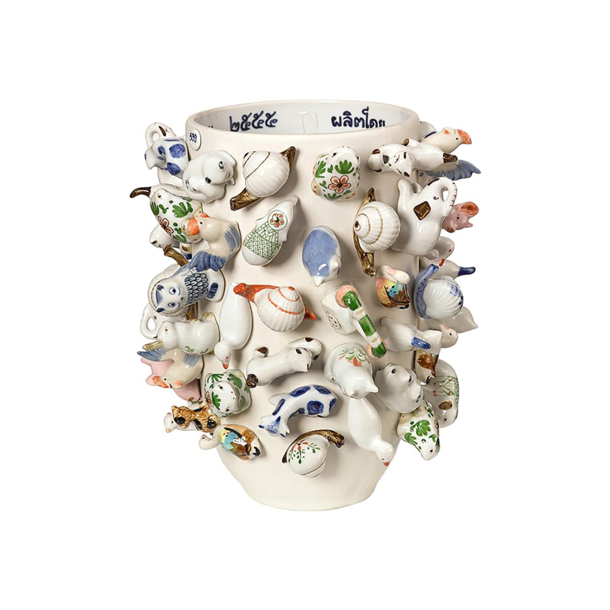 Make a bold statement in your home with this Zoo Souvenir Vase from Pols Potten. Crafted from white porcelain, it is embellished with detailed animal figurines and has a chic glazed finish. A simple way to update your space, pair this vase with more home accessories from Pols Potten to create a unique interior style. Key features: * Decorative vase * Material: porcelain * Dimensions: Ø14xH24.5cm * Embellished with detailed animal figurines * Glazed finish * Handmade elements * As every piece is unique, the finish may vary slightly