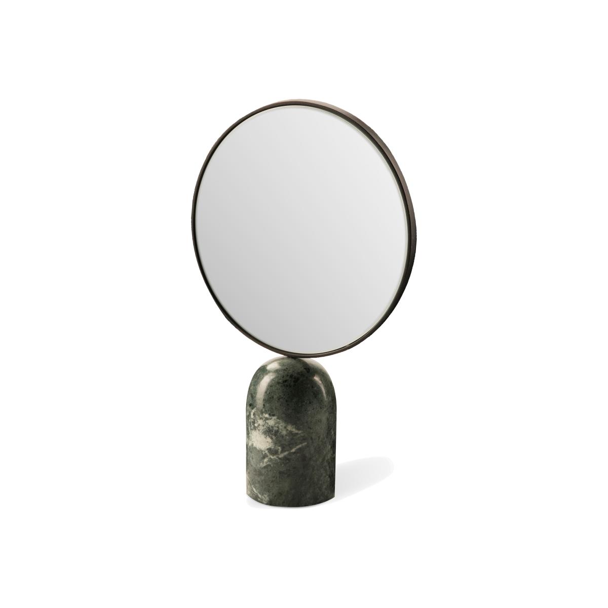 I love this round marble table mirror for its sleek, contemporary look and the way it adds a touch of colour with the green finish. It works particularly well in eclectic, modern or even minimal interiors where each piece is chosen for its materiality and subtle character. The marble base not only provides stability but also introduces natural texture, making it a versatile addition to vanity tables, living areas, or bathrooms. For styling tips, consider pairing it with Statement accessories or grouping it with other natural materials like wood or brass to create a balanced, layered look. Its rounded shape also makes it perfect for softening angular furniture or creating visual interest in a space.