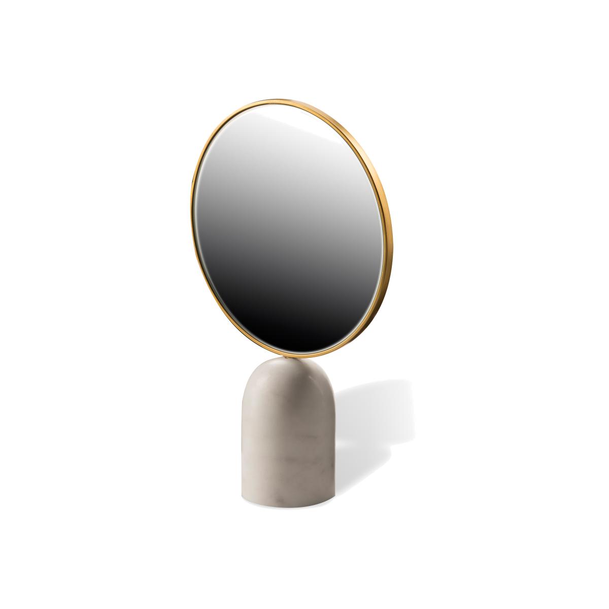 I love this round marble mirror for its clean, minimalist aesthetic and the way it elevates any space. Its white finish with a subtle gold rim adds a touch of elegance, making it versatile enough for both contemporary and classic interiors. It works particularly well in bedrooms as a vanity mirror or in living rooms to create a sense of openness and light. For styling, consider pairing it with soft textiles or contrasting materials like wood or metallic accessories to enhance its modern appeal. Placing it on a vanity or console table allows it to function practically while serving as a stylish focal point.