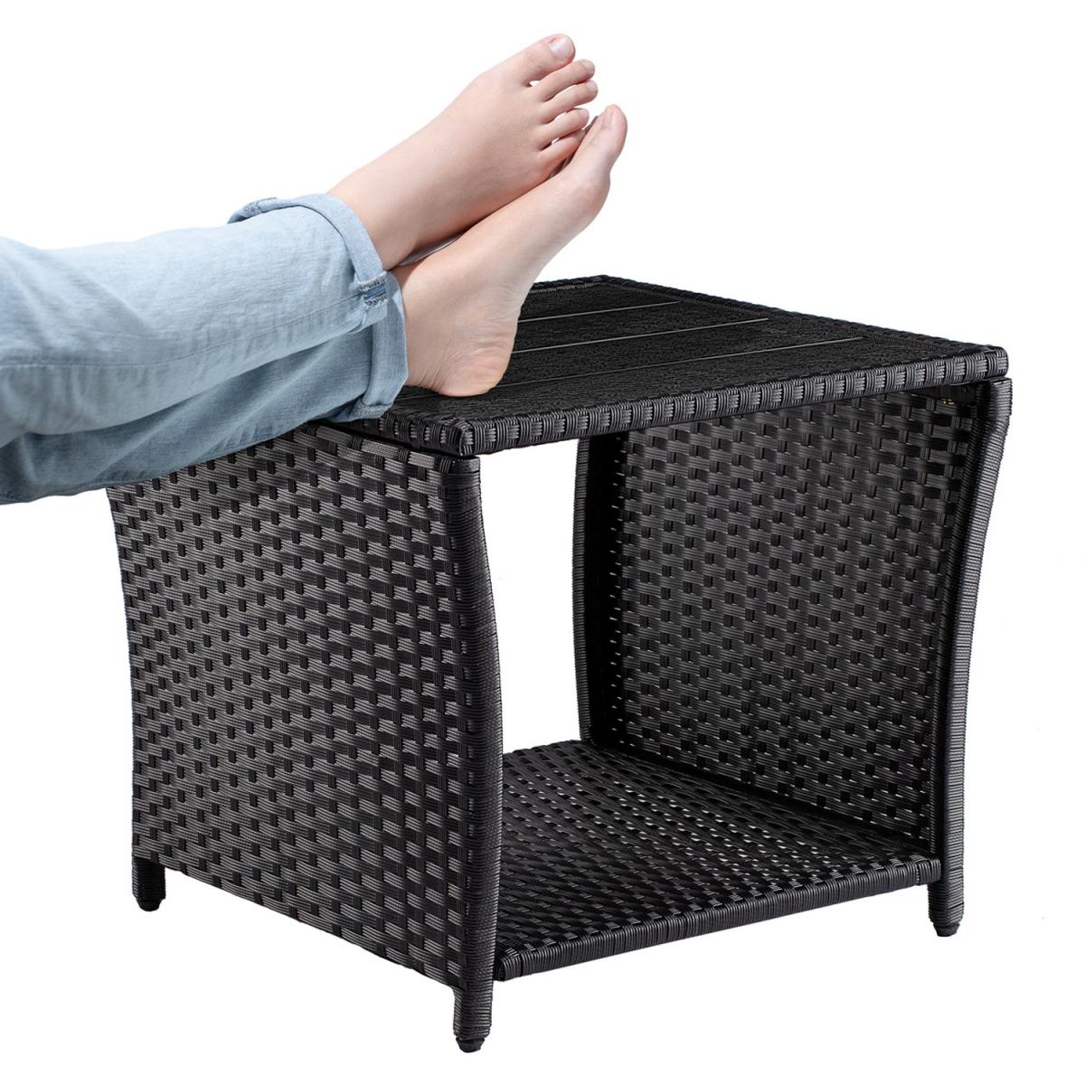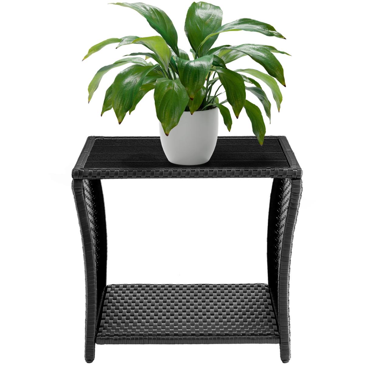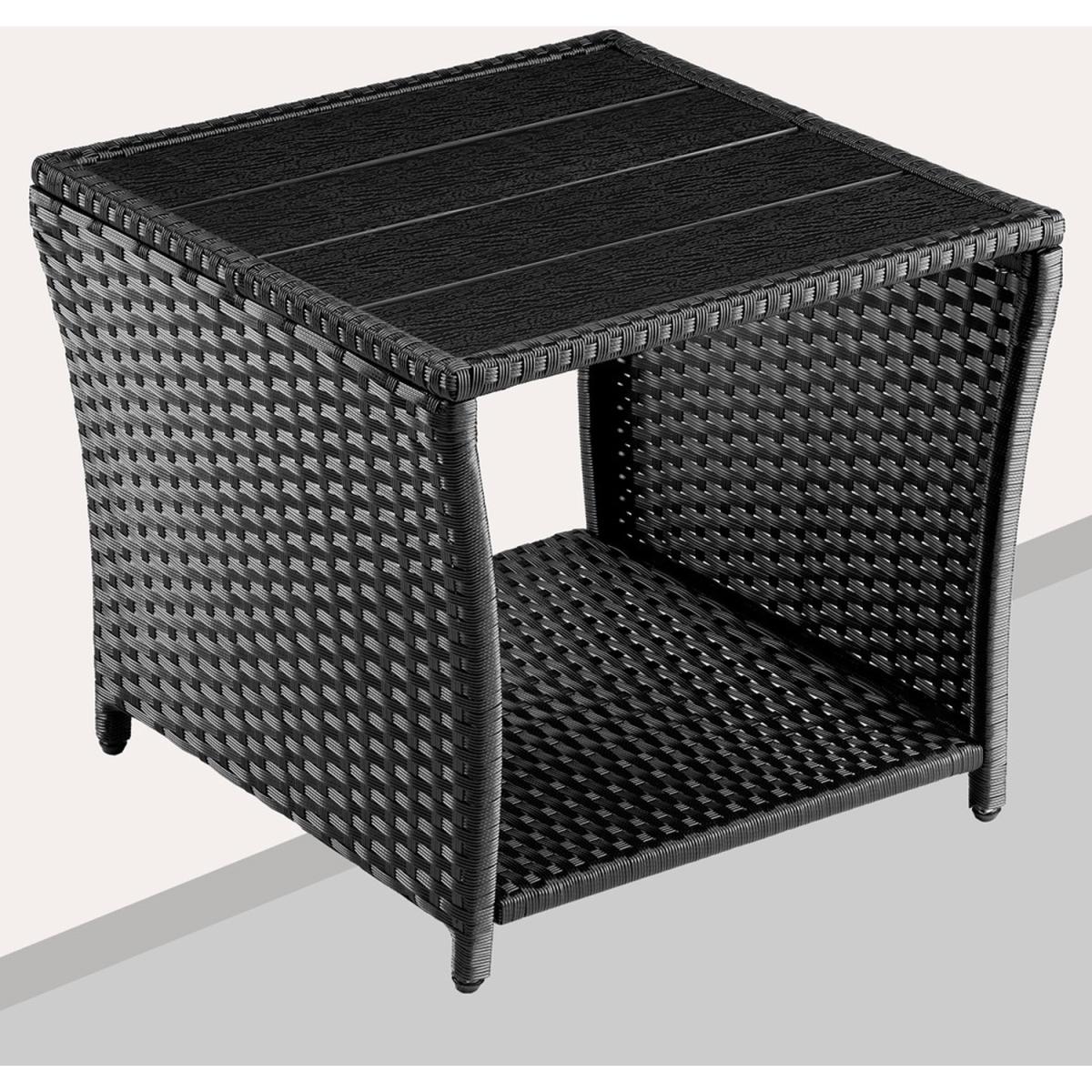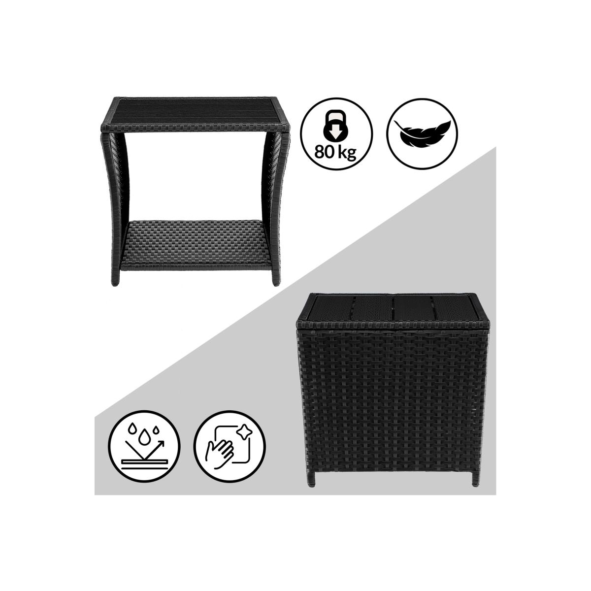Stylish and ideally combinable! This practical polyrattan coffee table is the ideal addition to your home. Whether as a storage option near a sun lounger, in a lounge corner, as a footrest or as a plant stand, it is always the highlight of your four walls. Thanks to the stylish design, the table can be ideally combined. The durable and extremely weather-resistant WPC table top consists of a wood fibre and plastic mixture and impresses with its natural wood look. So you can use the coffee table for both indoor and outdoor use. There is a storage compartment under the table for magazines, books and other useful items. The poly rattan of the coffee table is weatherproof, dirt-repellent and UV light resistant. The frame of the table is made of powder-coated steel and is therefore particularly durable, stable and robust. The tabletop can be loaded with a total of 80kg and the piece of furniture can be assembled quickly and easily using the supplied assembly instructions.