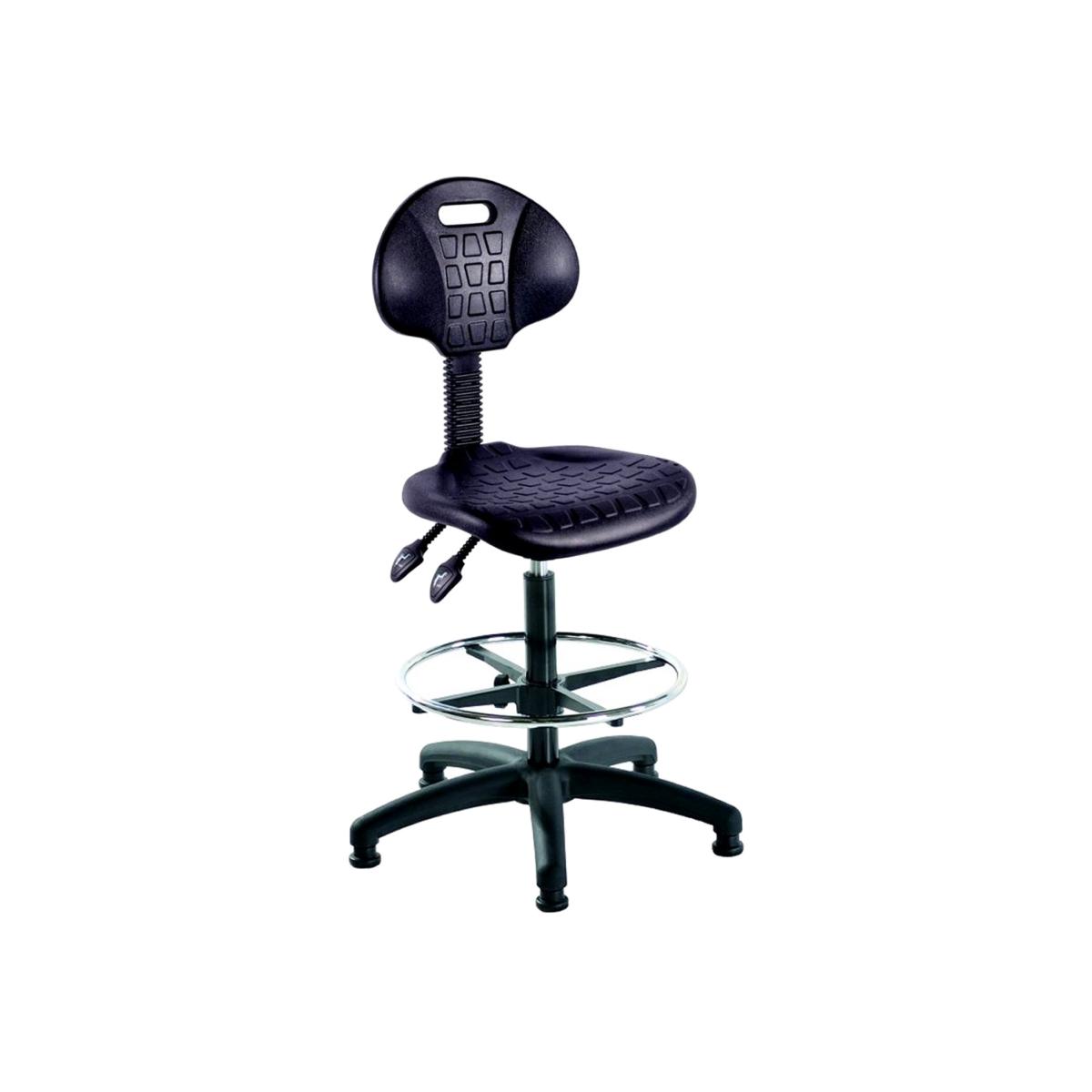 A polyurethane draughtsman chair with a cushioned polyurethane seat and back which is ideal for a range of environments including factory, industrial lab or workshop areas. A very durable industrial style chair which can be washed or steam cleaned as required. It comes complete with a large 14 Inch gas lift and adjustable chrome foot ring. As well as a wide range of seat height, the back angle and back height can also be adjusted to suite the user.