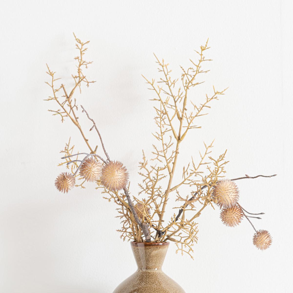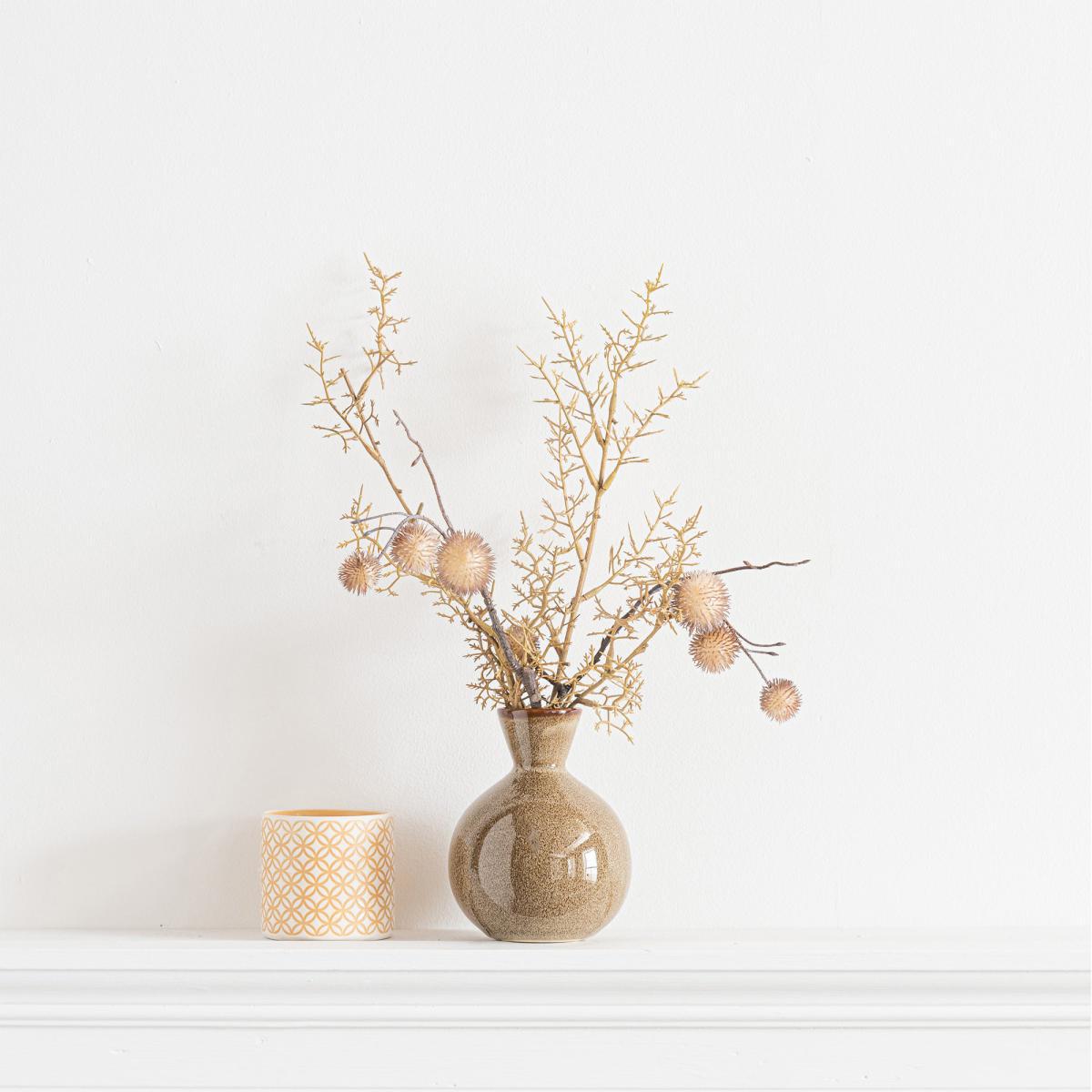 I really like this one for its understated elegance and versatility. It works particularly well in both modern and traditional interiors, adding a touch of softness without overwhelming the space. The neutral tones and textured finish make it easy to pair with other decor elements, while the ceramic pot gives it a crafted, high-quality feel. For styling, I’d suggest placing it on a sideboard, mantelpiece or even as a centrepiece in a minimal dining setting. To keep it looking fresh, give it a gentle dust now and then and consider swapping it between rooms seasonally to refresh your decor without any fuss.