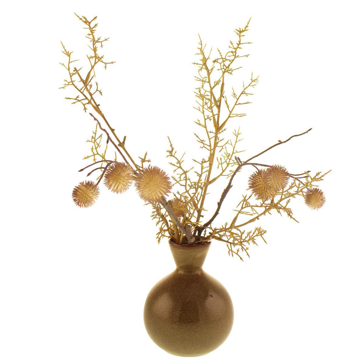Add a boho look and feel to any room of the house with this natural looking pom pom arrangement, set in a stunning ceramic pot. The piece will bring a stylish pop to your home, complementing an array of home decors beautifully. Whether it is placed on a table or on a windowsill, this piece is modern and chic.