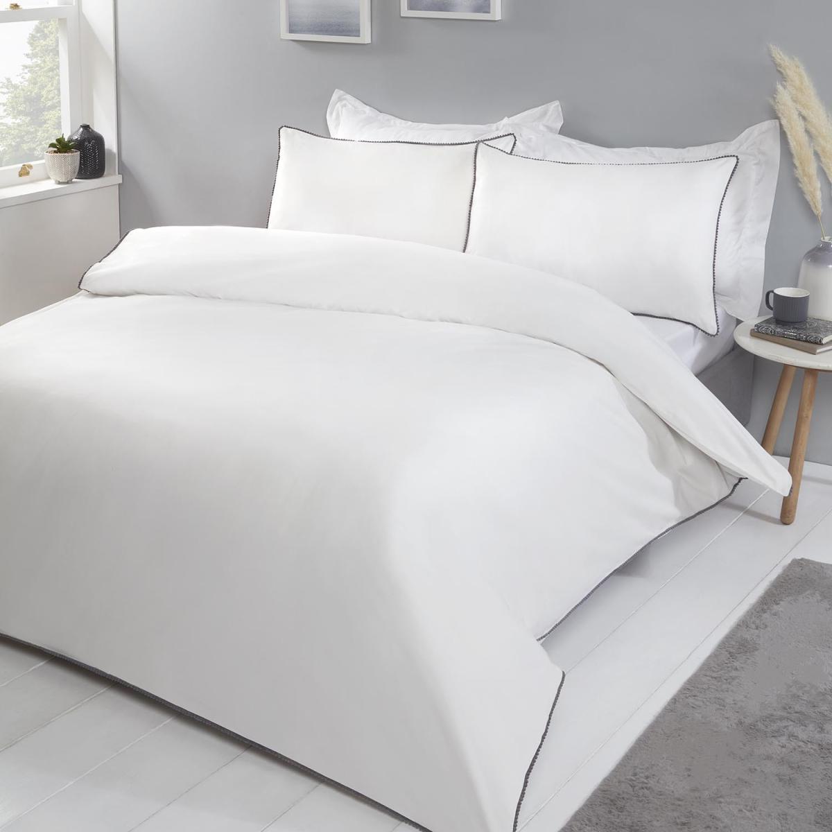 Simple and super sophisticated, the Pom Pom Duvet and Pillow Case Set is coloured a flat white and features a sharp border of black pom-poms around the duvet sheet and pillowcases. Woven from a polyester heavy polycotton blend, this stylish duvet set will remain robust but soft and cooling as you sleep.