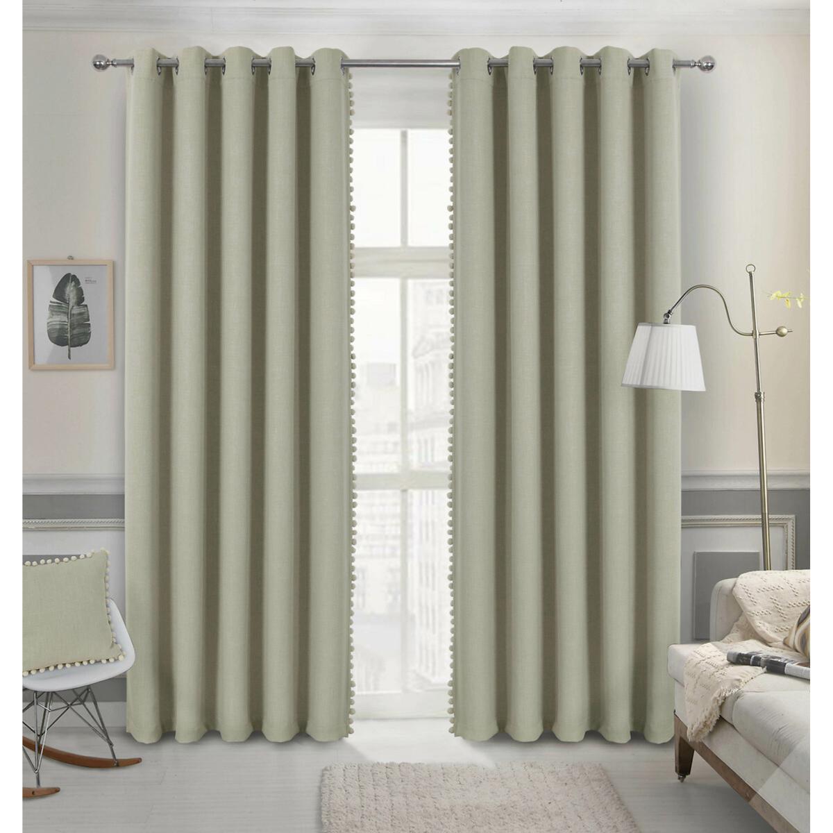 This product will be dispatched by one of our trusted suppliers. You’ll be contacted by their selected courier about your delivery. Linen texture medium weight curtains with stylish pom pom trim alone one edge of the curtain. Light filtering curtains will block out a certain amount of the suns light, all of our light filtering curtains have been given a percentage rating to let you know which best suits you. Lighting Percentage- 75%.Sizes Available:1.W114xD137cm2.W114xD183cm3.W165xD137cm4.W165xD183cm5.W165xD229cm6.W229xD183cm7.W229xD229cm