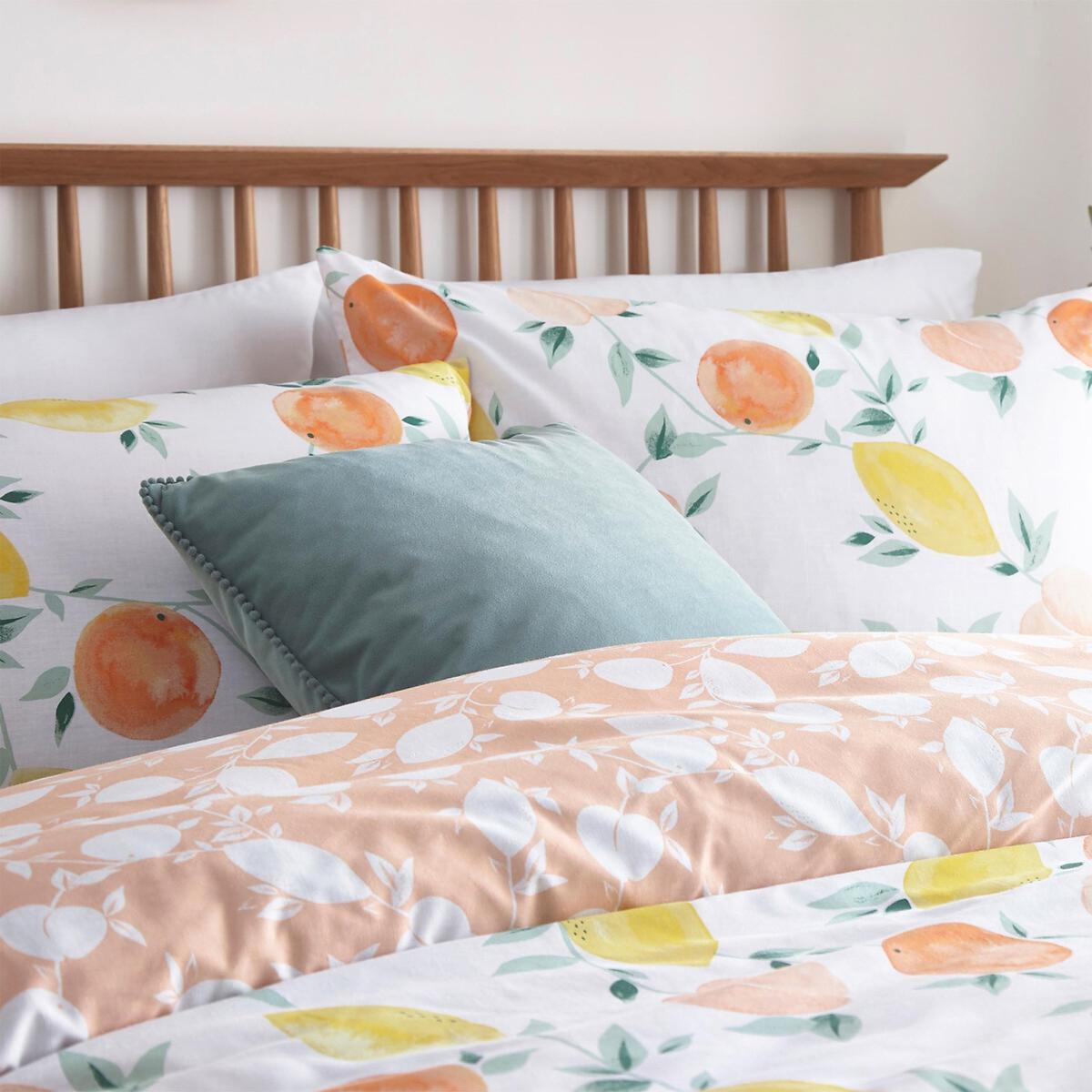 This duvet set is a great choice for adding a fresh, cheerful touch to a bedroom. I love how the fruity pattern can brighten up a neutral or pastel space, making it feel inviting and lively. It works particularly well in relaxed, coastal, or Scandi interiors where natural textures and light colours create a calming atmosphere. For styling tips, consider pairing it with plain bedding or cushions in soft pastel or earthy tones to let the pattern stand out, and add textured throws or blankets for extra cosy layers. Its playful yet understated design makes it versatile enough to suit both casual and slightly more refined bedroom schemes.