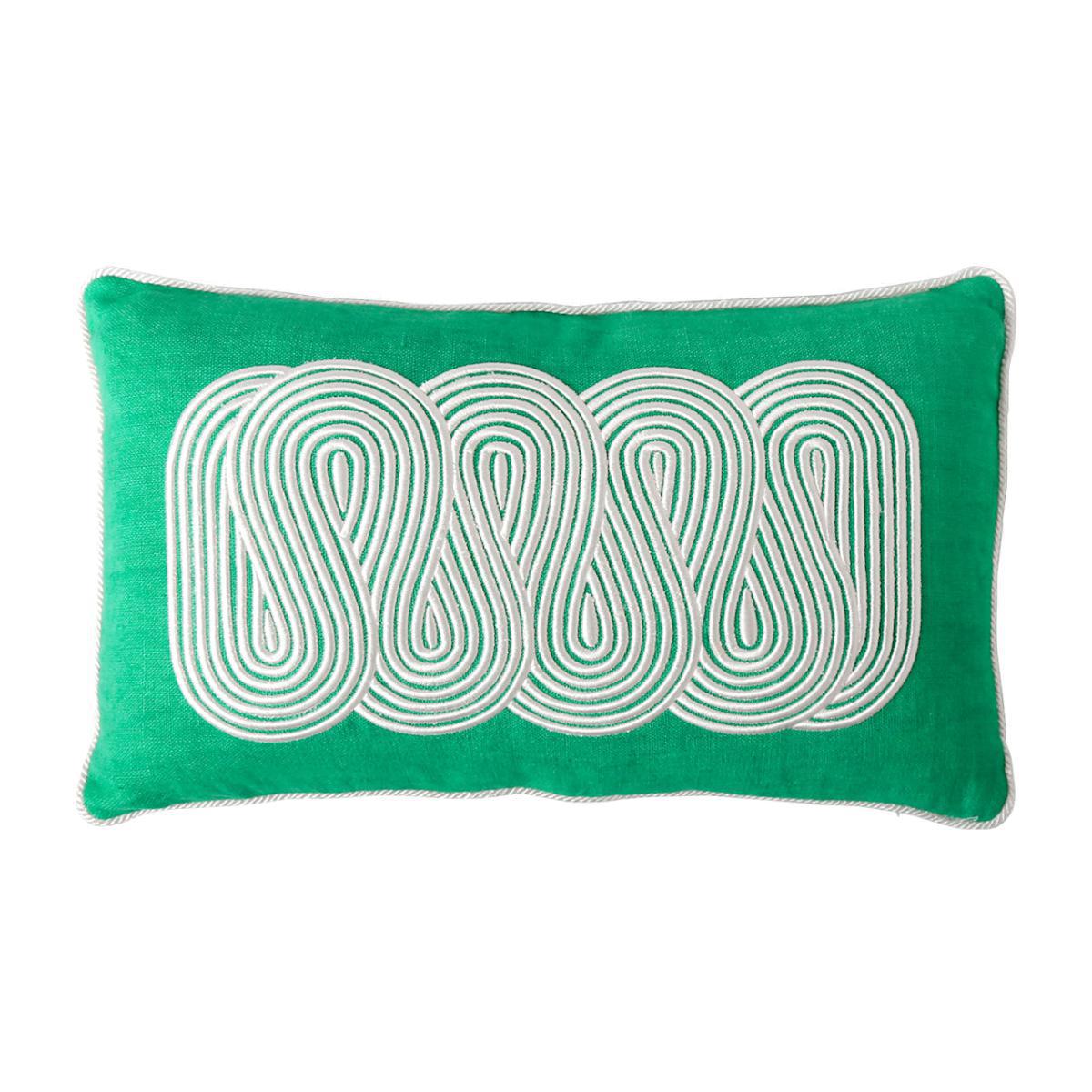 Pompidou Path Cushion - / 50 x 30 cm - Linen & satin embroidery by Jonathan Adler Green
