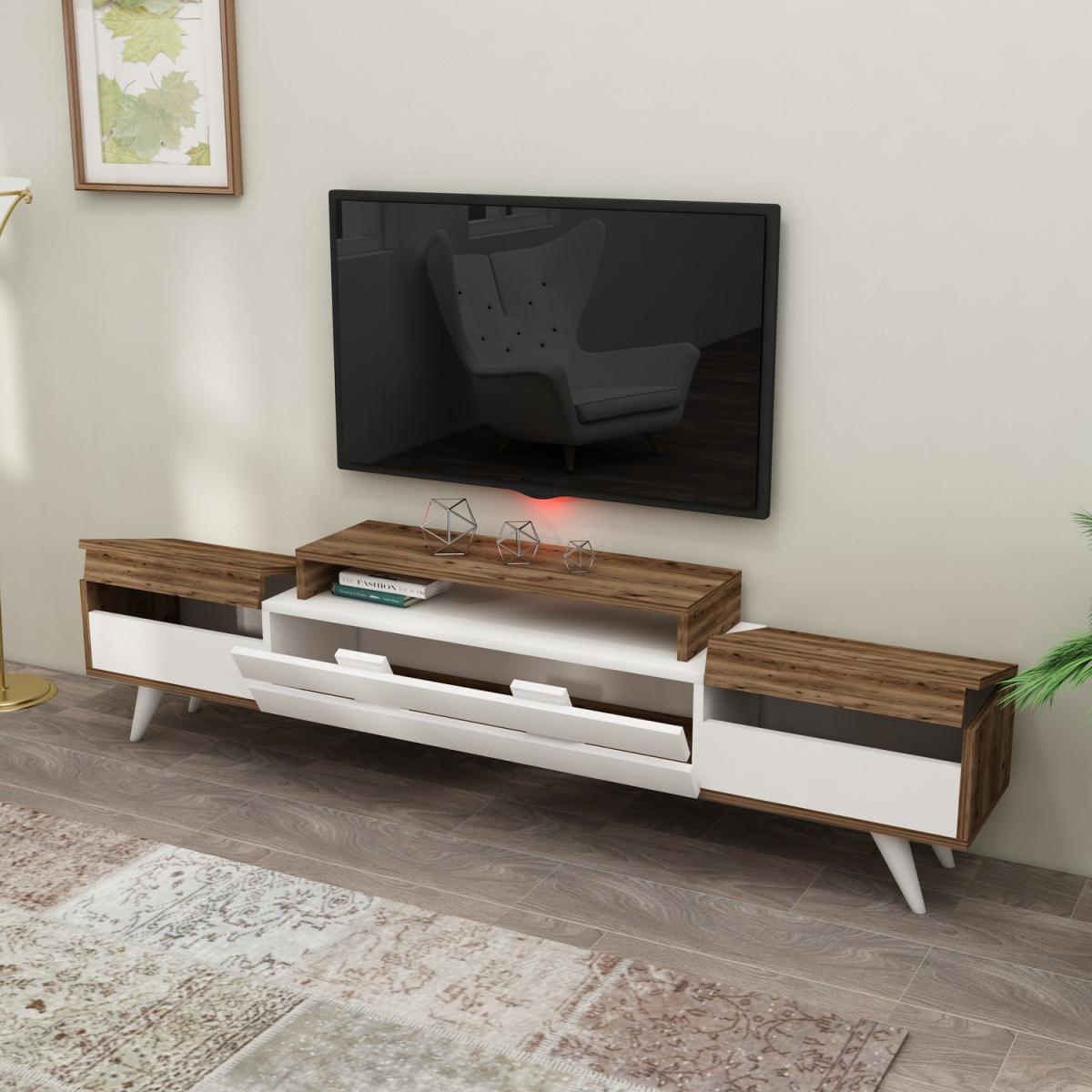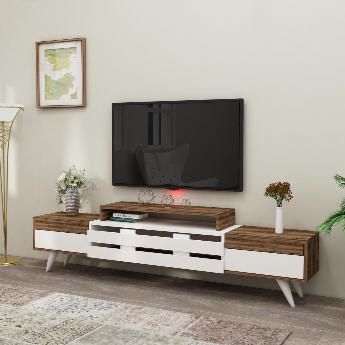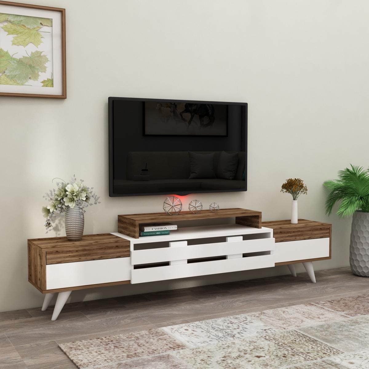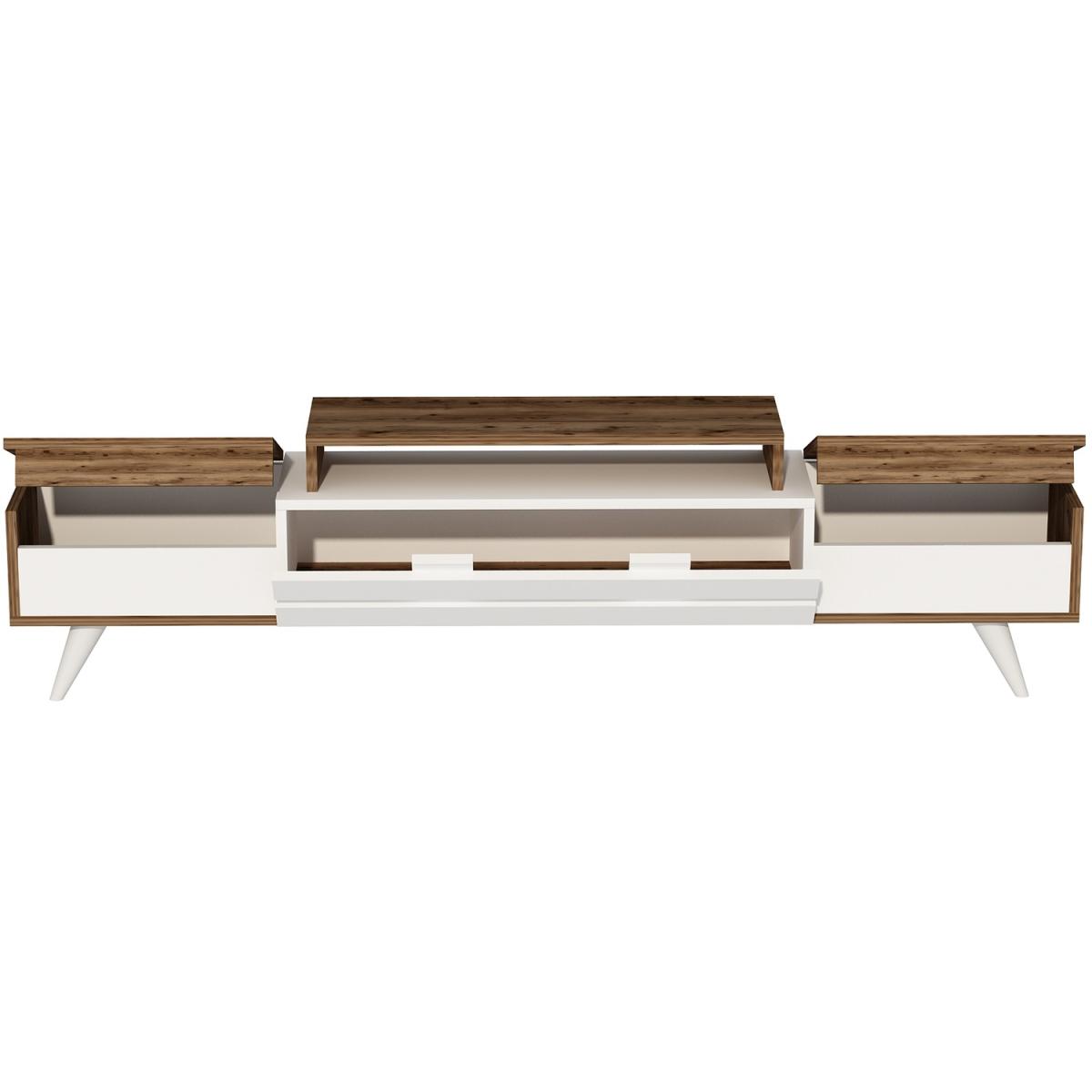MATERIAL The TV Stand is made of an 18 mm thick quality melamine-coated particleboard. The manufactured wood surface is water-resistant to some extent and the edges are banded with PVC edge banding tape. First-class assemblyinstallation hardware and accessories are used. Our products are produced from certified quality raw materials that do not contain carcinogenic substances and comply with European Union health norms. CLEANING You can clean your furniture with a dry cloth. Avoid prolonged contact of your product with moisture and water. ASSEMBLY The product will be delivered to the customer in the original package as disassembled. It is designed to be assembled by the customer using a power drill and screwdriver. Assembly instruction and installation hardware are included in the package. For fast and error-free installation, product parts are numbered with stickers in accordance with the assembly guide.