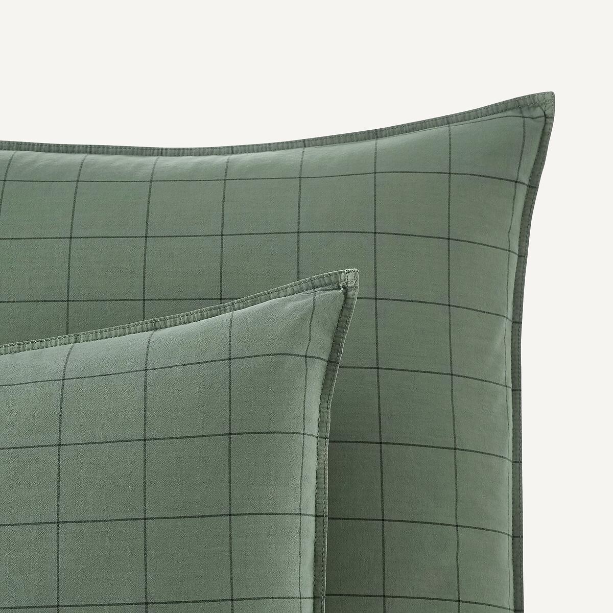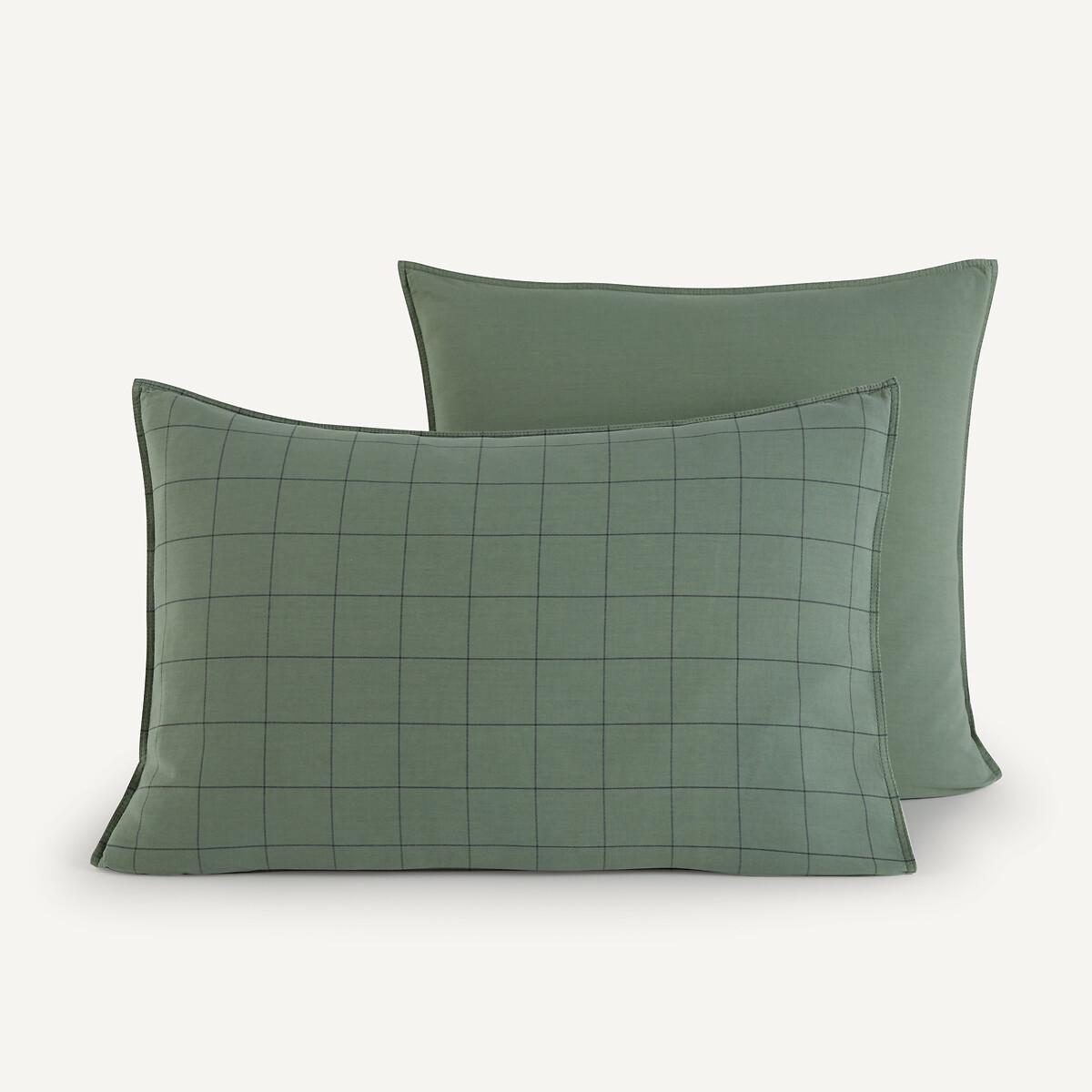 The Ponlok organic cotton pillowcase. Reversible with a large check pattern on one side and another plain side for a sober and timeless adornment. Cotton is part of our daily lives. We love it for its suppleness and softness. Easy Care, it is ideal for the beds of young and old alike!Product Details • 100% cotton • Organic cotton • 300 thread count: a common indicator for measuring the quality of fabric is the number of threads per cm². Different sensations are made possible thanks to the weaving and the number of threads present. Indeed, an optimal number of threads makes the bed linen particularly soft. Care Advice Follow our care tips to maintain the quality of your laundry • Machine washable at 60°C • By washing your laundry at 40°C instead of 60°C, you limit energy consumption • Tumble dry at low temperature • Iron at average temperature • Do not dry clean. Dimensions • 50 x 70cm: Rectangular • 65 x 65cm: Square • Cotton from organic farming. Organic farming does not use any chemicals, pesticides, insecticides or GMOs. Produced with minimal impact on biodiversity. • OEKO-TEX® Standard 100. Standard 100 certification by OEKO-TEX® tests textile products for harmful substances via an independent, international label.