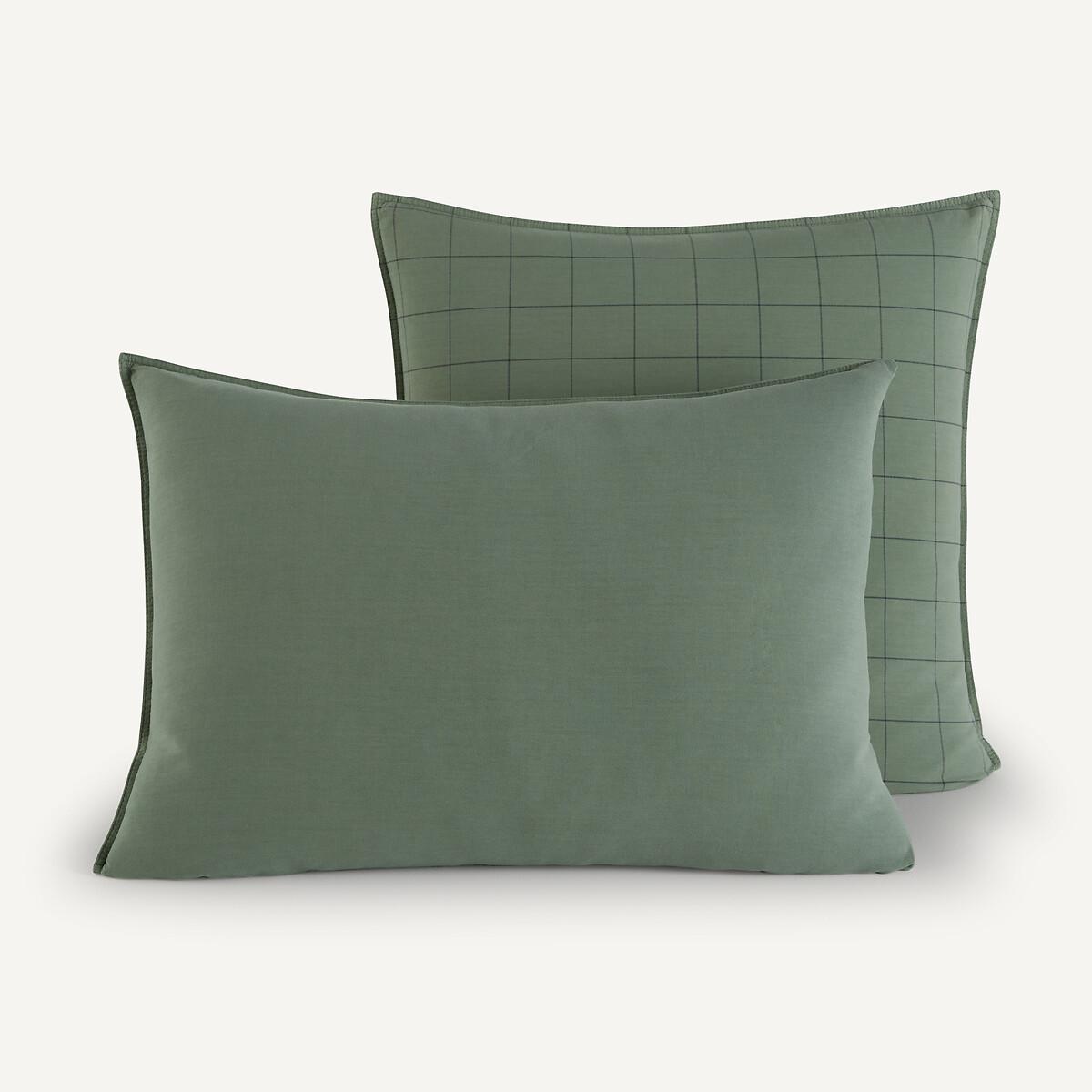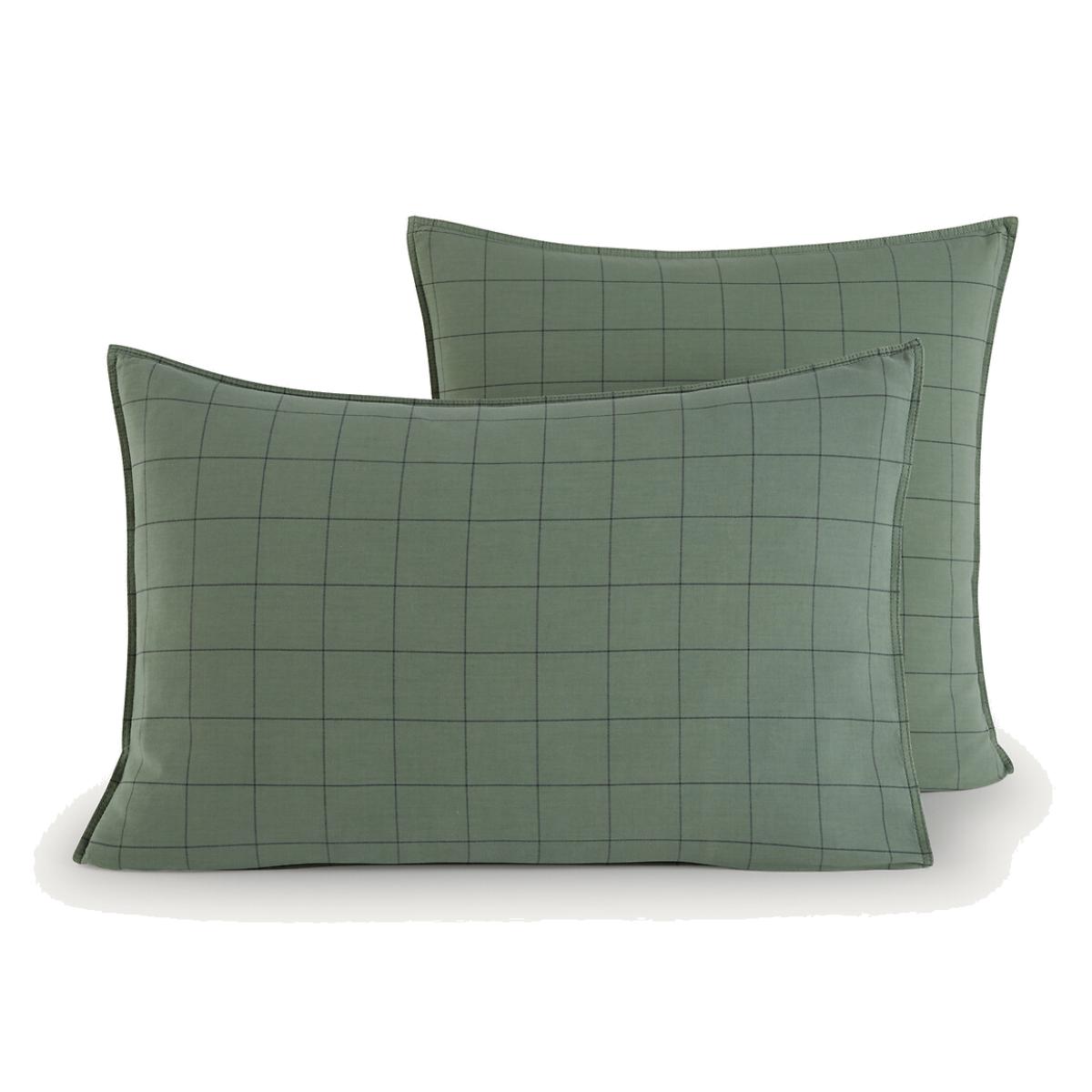 The Ponlok organic cotton pillowcase. Reversible with a large check pattern on one side and another plain side for a sober and timeless adornment. Cotton is part of our daily lives. We love it for its suppleness and softness. Easy Care, it is ideal for the beds of young and old alike!Product Details • 100% cotton • Organic cotton • 300 thread count: a common indicator for measuring the quality of fabric is the number of threads per cm². Different sensations are made possible thanks to the weaving and the number of threads present. Indeed, an optimal number of threads makes the bed linen particularly soft. Care Advice Follow our care tips to maintain the quality of your laundry • Machine washable at 60°C • By washing your laundry at 40°C instead of 60°C, you limit energy consumption • Tumble dry at low temperature • Iron at average temperature • Do not dry clean. Dimensions • 50 x 70cm: Rectangular • 65 x 65cm: Square • Cotton from organic farming. Organic farming does not use any chemicals, pesticides, insecticides or GMOs. Produced with minimal impact on biodiversity. • OEKO-TEX® Standard 100. Standard 100 certification by OEKO-TEX® tests textile products for harmful substances via an independent, international label.