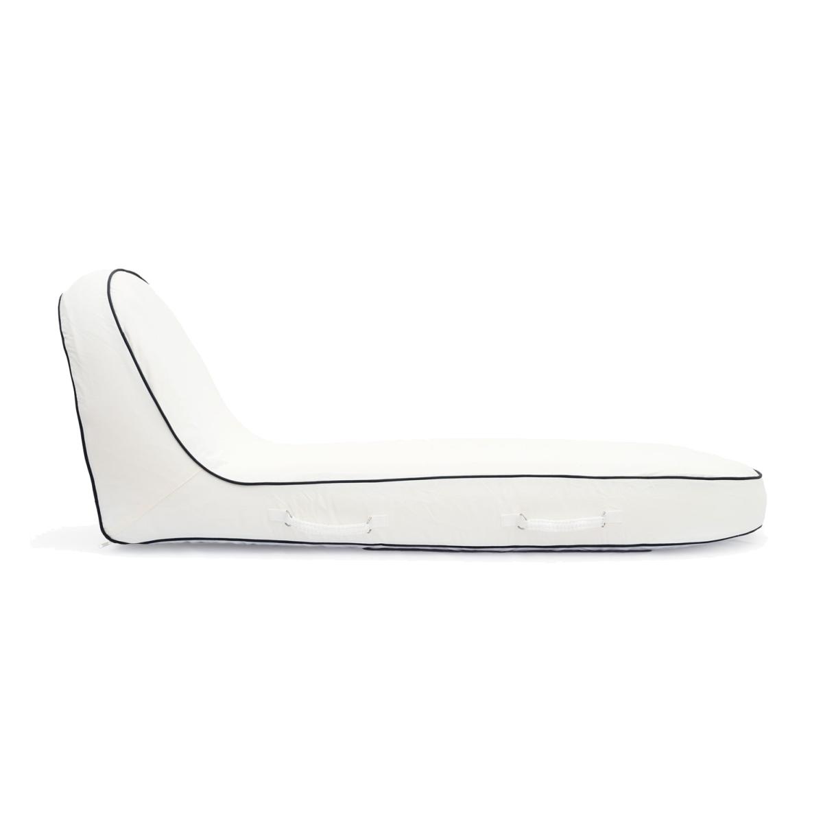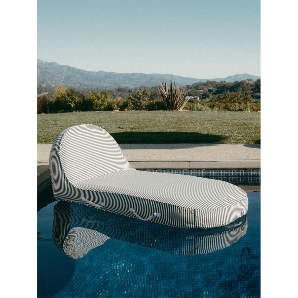 Relax into weightlessness with the Pool Lounger, a luxurious inflatable chaise sure to elevate your pool decor to a whole new tier. An inflatable inner form crafted from ultra-durable PVC with a Pleasuretex outer cover combines to provide comfort, durability and the B&PCo aesthetic. Perfect for tranquil moments of reflection in the pool, with space enough for a friend if company is desired. The inflatable Pool Lounger marries timeless luxury with durability to add a chic touch to your poolside decor. Every technical feature gears toward sustained aquatic enjoyment, from marine-grade stainless steel fixturing, puncture resistant PVC inner, and a Pleasuretex cover made for years of carefree drifting on sunny afternoons. Utilize any standard pump via the one-way Boston valve to bring this oversized island in the sun to life in minutes. Lightweight at 9 lbs, the Pool Lounger is your key to poolside leisure.