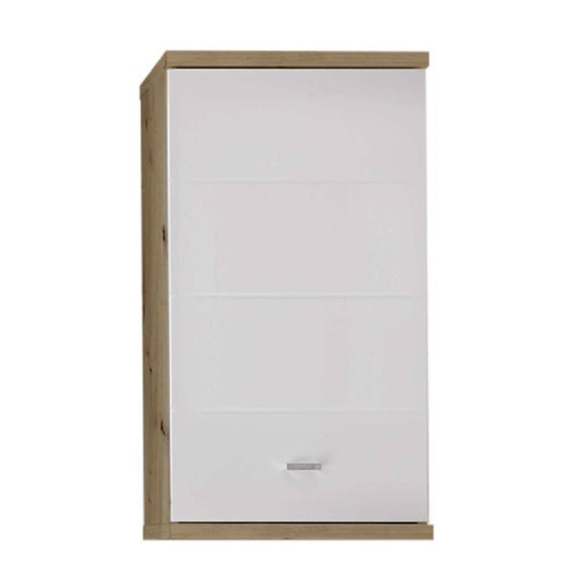 * Sleek, glossy white cabinet * Natural wood effect frame * Spacious shelving Ideal for smaller bathrooms or where floor space is limited, this wall-mounted cabinet offers a smart storage solution. The Artisan Oak frame and glossy white door create a fresh, modern look, complemented by subtle lined detailing and a sleek silver handle. Inside, two shelves provide just the right amount of space for storing toiletries and other essentials, keeping everything neatly tucked away yet easy to reach.
