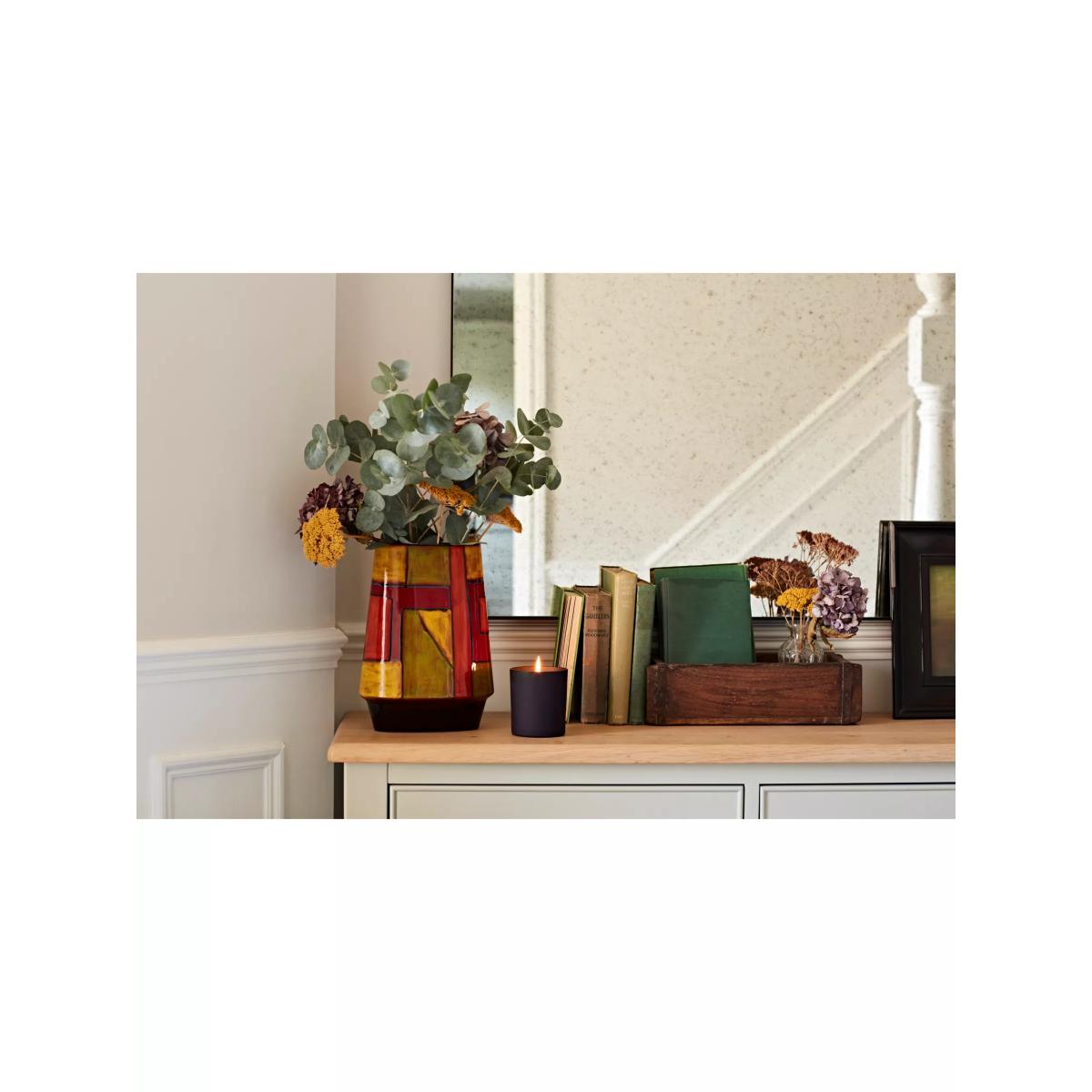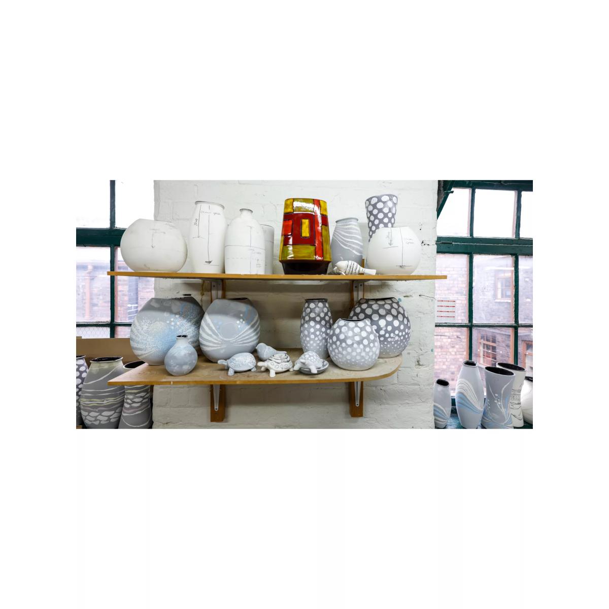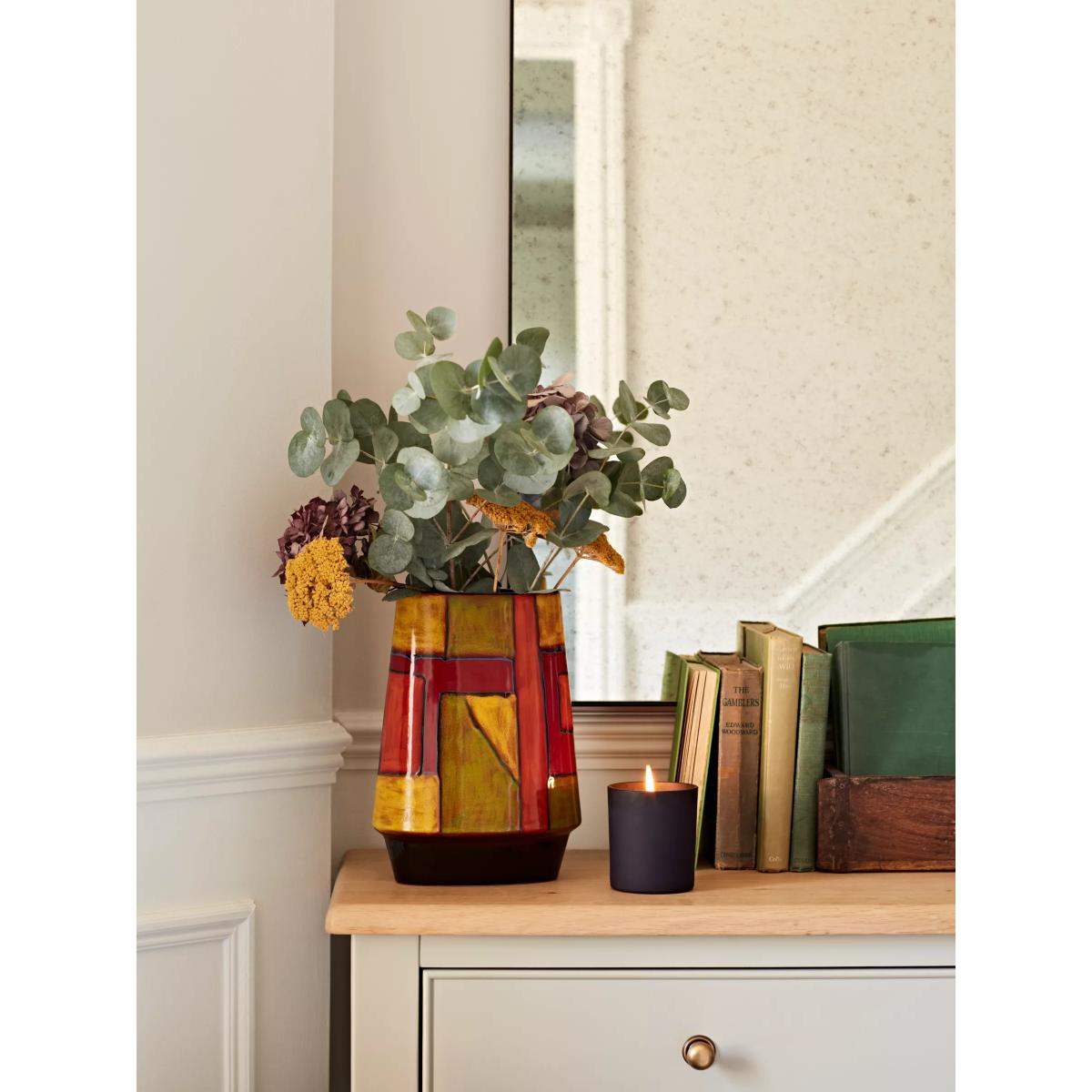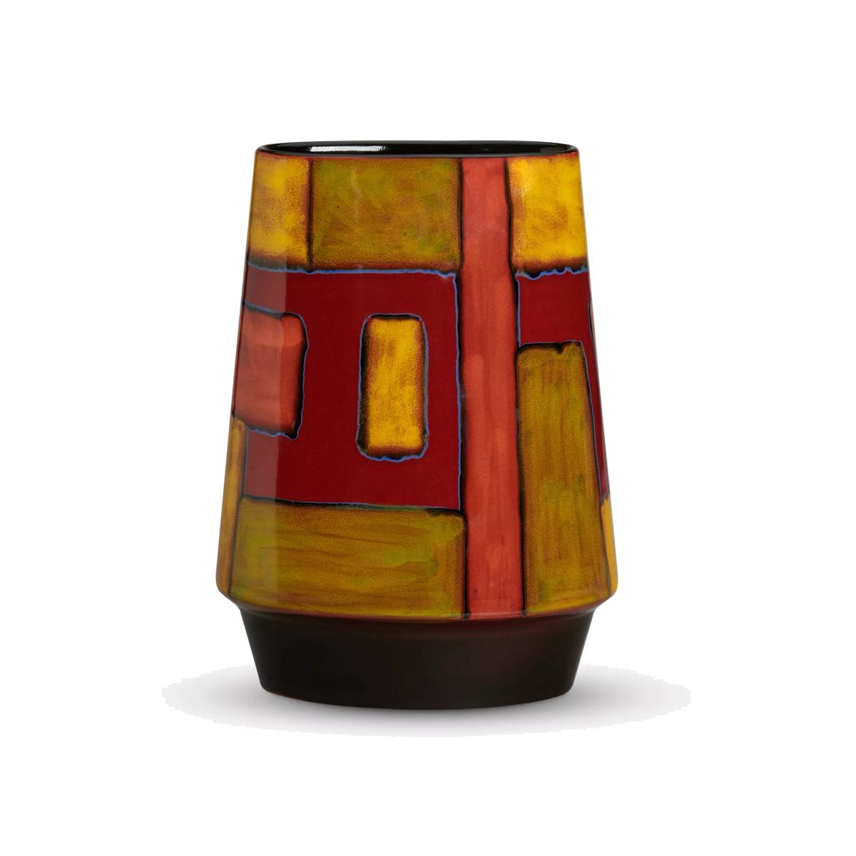 A commemorative design marking over 150 years of Poole Pottery, this Keystone vase has a distinctive character. The vase shape takes its inspiration from a vase produced in the 1960s, simply called 'vase No 25'. The oval conical shape creates a perfect surface to hand decorate and the raised foot gives the vase a presence, making it a statement piece. The commemorative pattern draws on the geometric, largely abstract designs that were synonymous with Poole Pottery at the most creative time in its history. The use of unrivalled vibrant colours gives this vase the unique bold appeal that we have loved, and continue to love, from Poole Pottery which has been made in England since 1873. This hand-painted vase allows dried flowers and artificial foliage to open out in display. Each vase is decorated by hand and is unique in pattern and colour tone. The Keystone Vase at a glance: Cast by hand from English earthenware clay Glazed in multiple, reactive layers that continue to develop as the piece matures Personalised with the artist's own individual mark Beautifully presented in a stylish Poole Pottery gift box