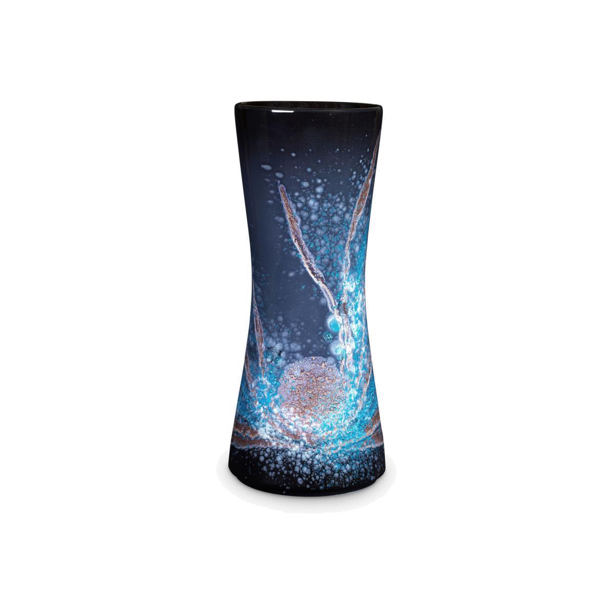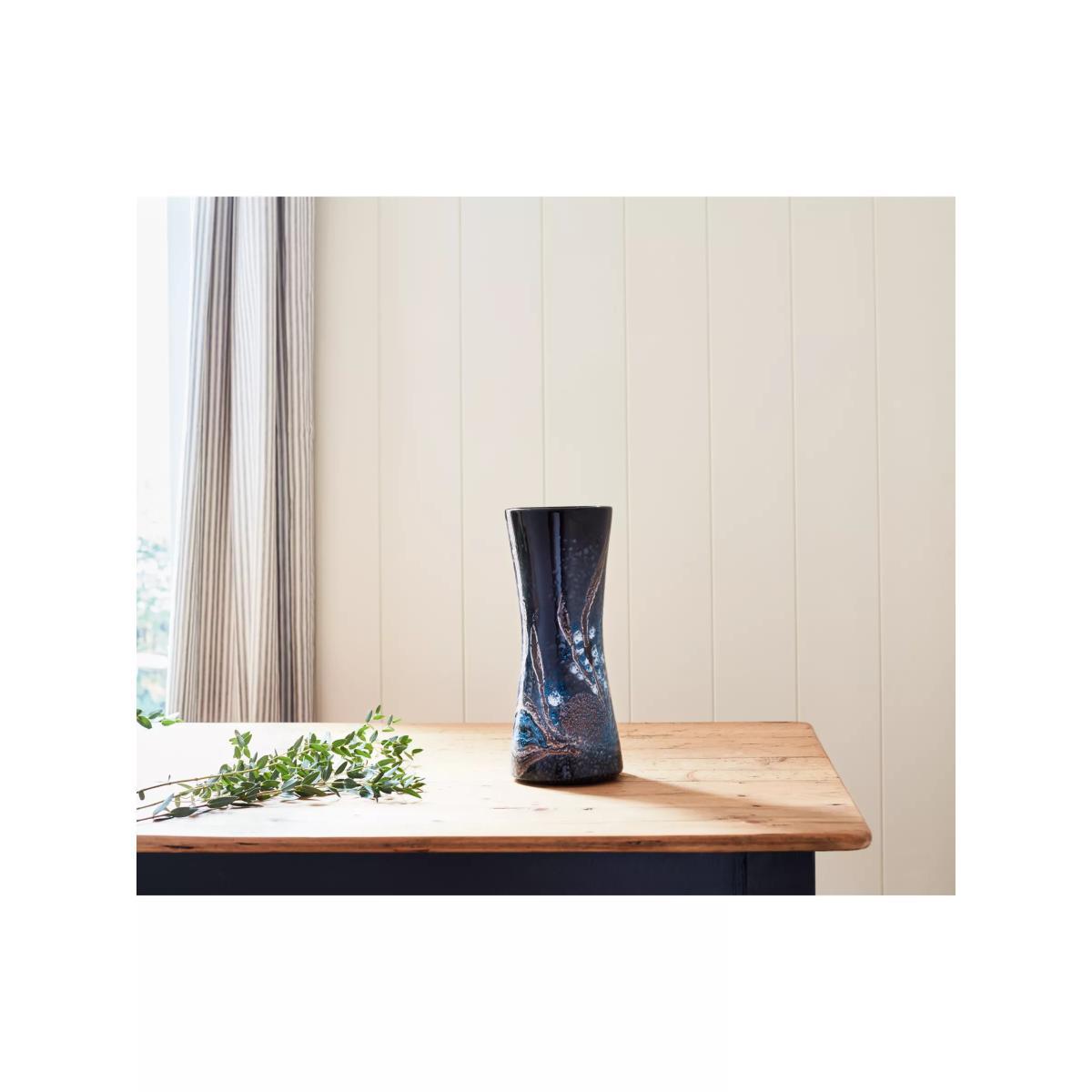 Made in the UK Layered colours are handpainted onto this Poole Pottery vase to create a dramatic effect akin to looking up into a dark night sky and seeing celestial bodies at play. The hourglass shape is perfect for displaying tall stems and bouquets.